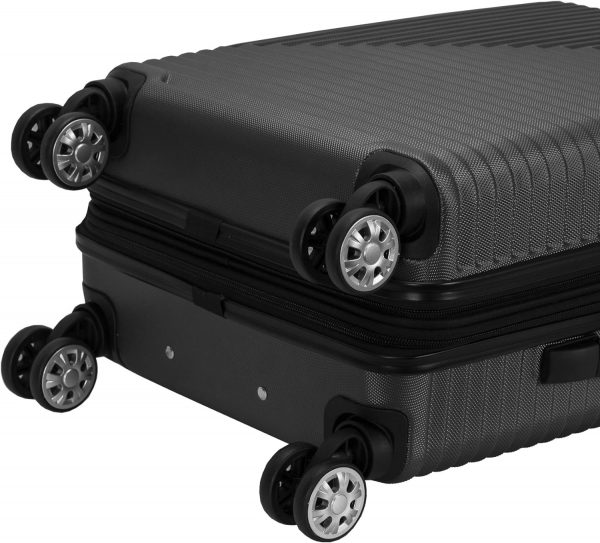 This 2 pc. Set is made of ABS. The major benefits of this material – it is extremely lightweight, it is durable, and protects the contents of your luggage. Eight multi directional spinner wheels rotate 360 degrees for easy maneuverability. This luggage allows you to pack more while avoiding the excess weight surcharges imposed by most airlines. Features: Expandable. Multi-directional spinner wheels for easy maneuverability. Modern internal chrome telescoping handle with push button handle. Interior mesh and zip pocket and elastic pocket. Set includes: 20″x 13″ x 9″ weighs 6 lbs, 28″ x 17″ x 12″ weighs 10 lbs.