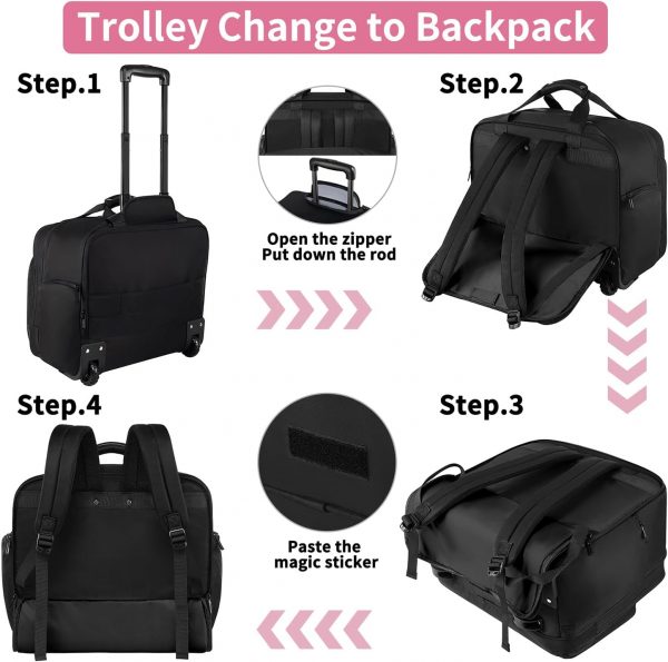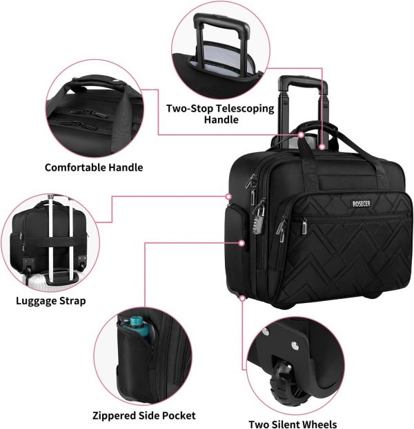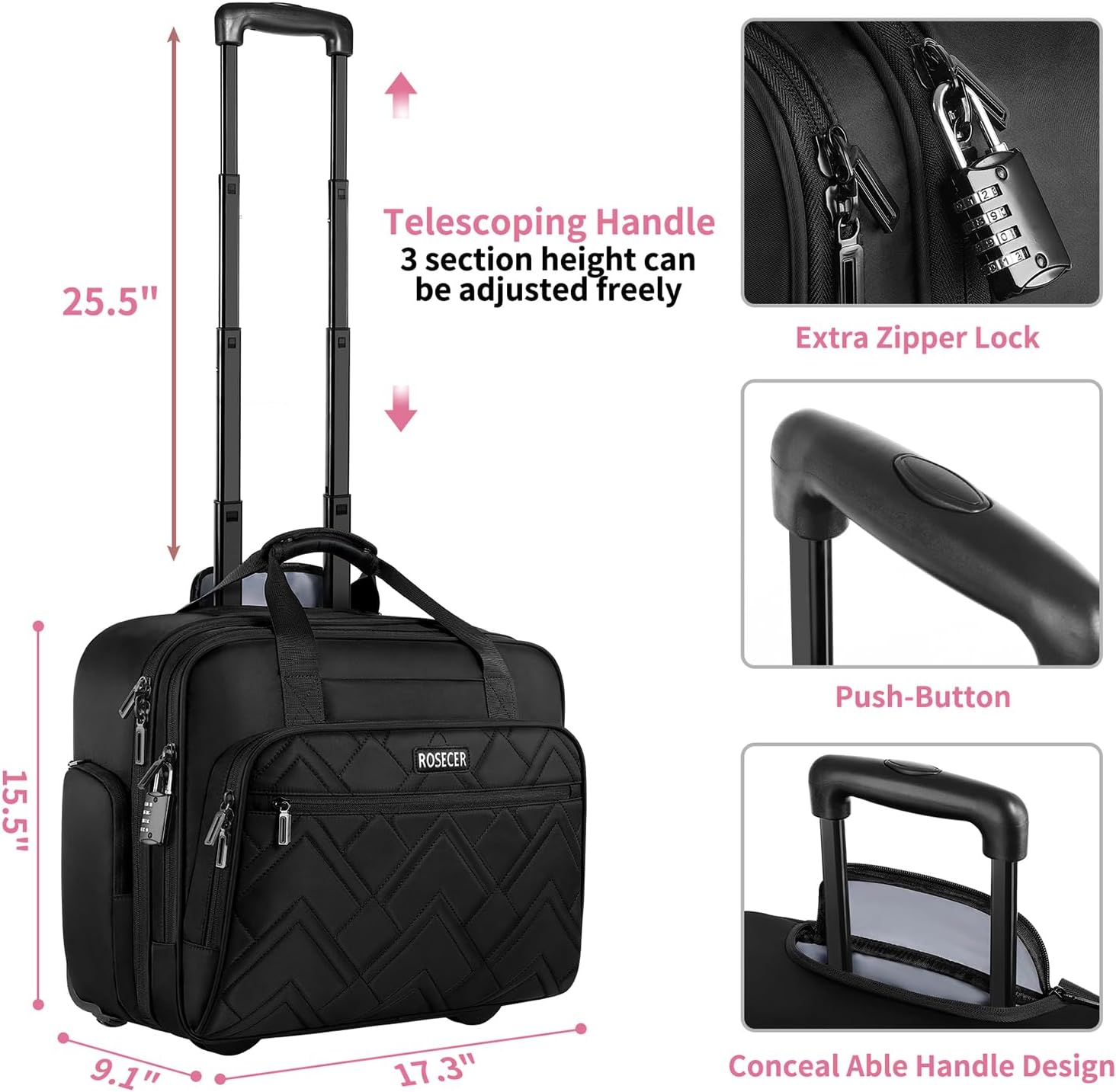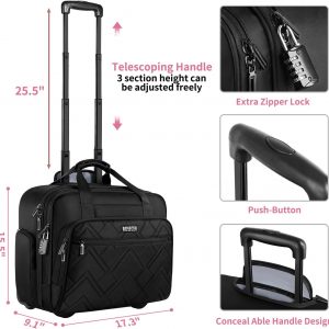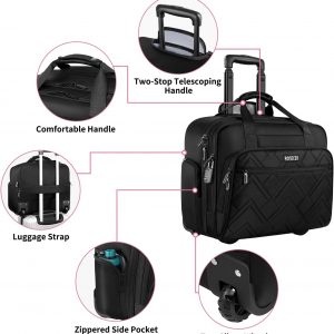 【Rolling Laptop Bag】The rolling laptop bag is made of high-quality waterproof fabric. The Rolling Briefcase has multiple functional compartments to meet your travel needs and is perfect for business and personal travel. Dimensions: 17.3″ x 9.1″ x 16.5″. Weight: 5.95 lbs. Maximum length of telescoping handle: 24 inches.