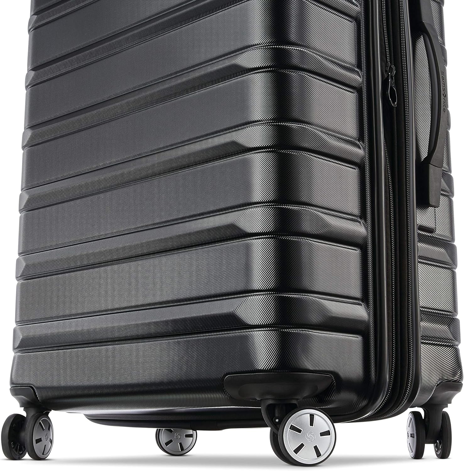 SCRATCH-RESISTANT POLYCARB brushed-texture shell reflects light and protects from scratches, keeping cases beautiful trip after trip