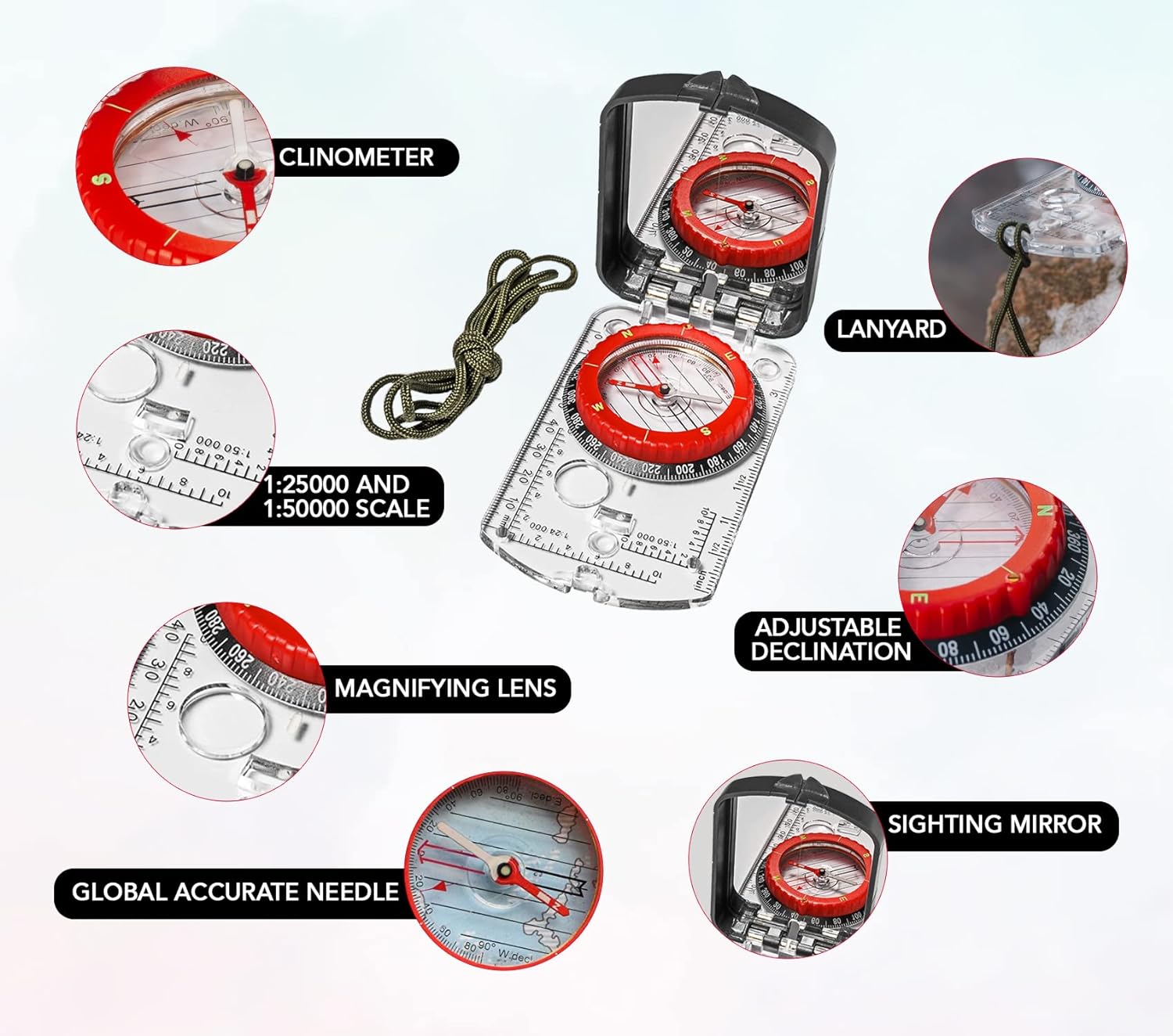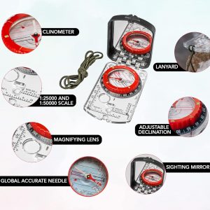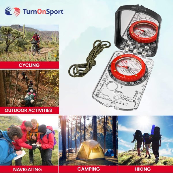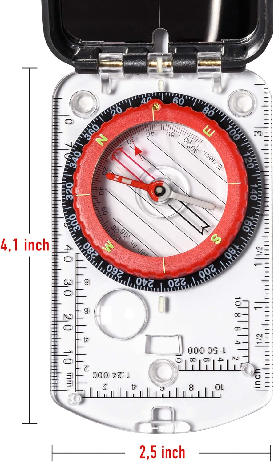 Sighting Compass Mirror Adjustable Declination – Boy Scout Compass Survival Camping | Base Plate Compass Kids Navigation | Orienteering Compass Hiking Map Read Military Compass Backpacking Clinometers
