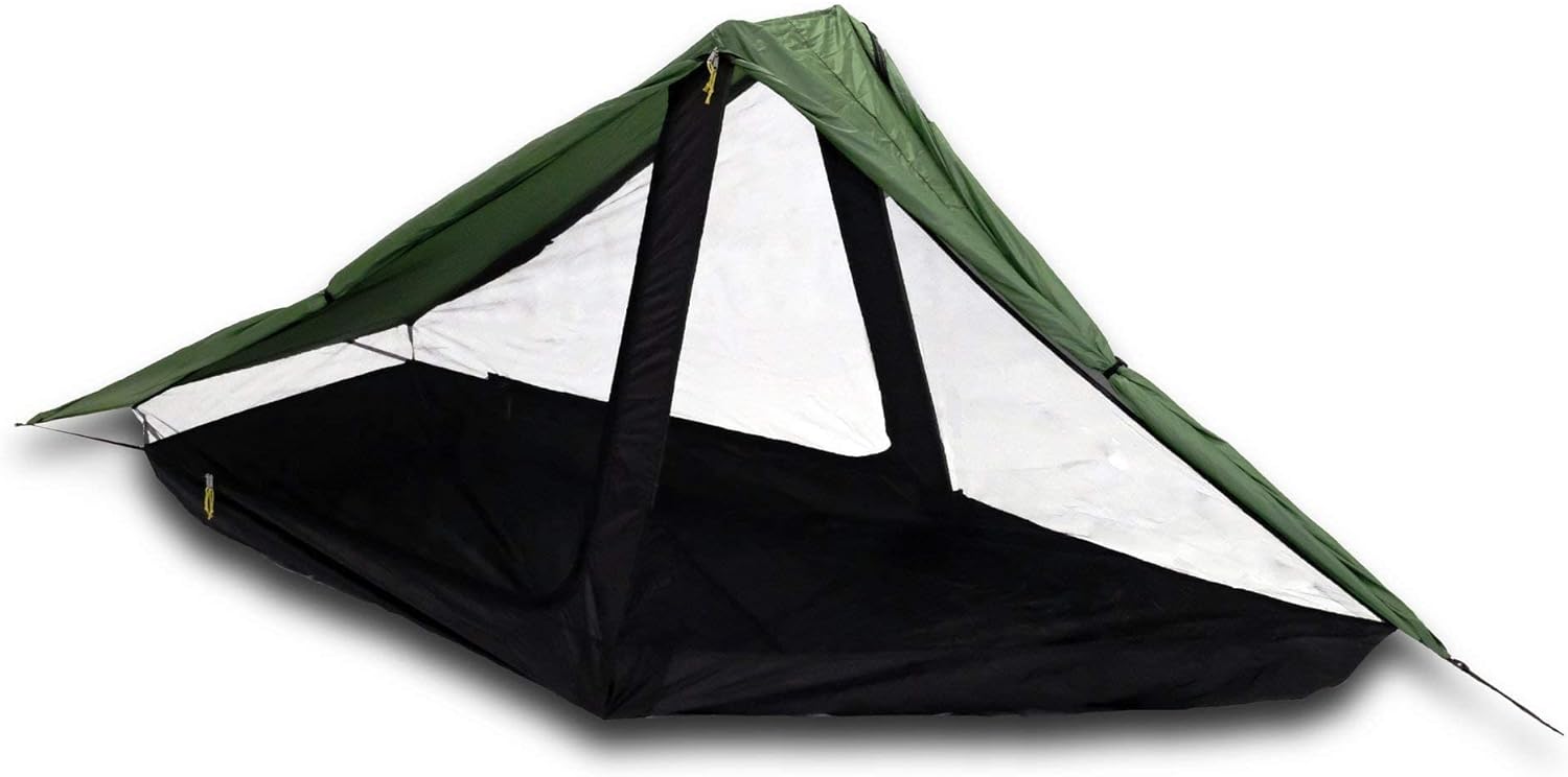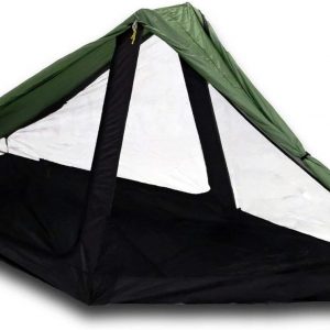 The Skyscape Scout is a great option for budget hikers getting into lightweight backpacking. the Skyscape Scout now features new longer 3-millimeter cord rear guy outs (not shown in photos) which provide improved interior height at the foot and increased ventilation at the rear. Also new is the addition of reflective guy outs all around. All Skyscape models utilize a dual fixed length 45″ or 115 cm pole support structure to create an A-frame-like structure. This can be achieved through the use of 2 trekking poles or 2 of our collapsible Aluminum or Carbon Fiber Poles (Sold Separately). While both poles work well with the Scout, the Aluminum poles are lower in price, while our Carbon Fiber poles are half the weight. The dual pole structure is slightly offset from the center of the tent. The offset yields extra headroom when lying down, reducing that claustrophobic feeling. Further, it allows the Skyscape to be extremely rigid when guyed out, creating a structure capable of riding out the worst storms. The Skyscape employs a Hybrid Double Wall construction. Over 80% of the canopy is separated from you by a mesh wall, keeping that wet canopy at bay. The Hybrid Double Wall construction allows the vestibules to roll back. On warm summer nights, convert the Skyscape into a net tent, pesky bugs stay outside while you enjoy the views and breezes. The Skyscape’s large side entry door lets you easily enter the tent or retrieve gear. With floor-length over 100 inches, the Skyscape accommodates the tallest hikers. Important Information, the following items are required to set up your Skyscape Scout but are not included: Tent poles: Dual 45″ Poles required (not included). Stakes: 5 required (not included). Also, be aware that to completely repel water, your Skyscape Scout will need to have a sealer applied to the seams before use. (Its seams are not sealed or taped). We recommend McNett Seam Grip + FC found on Amazon.