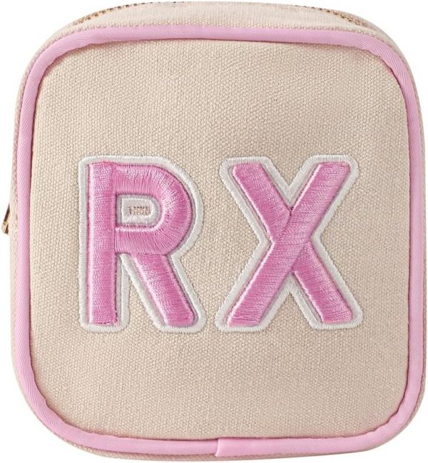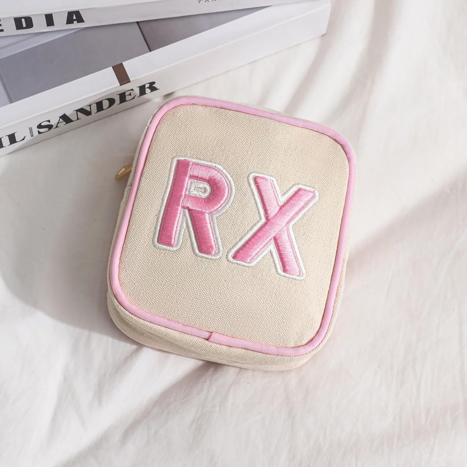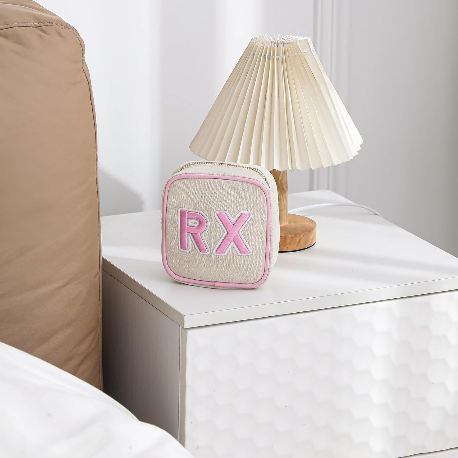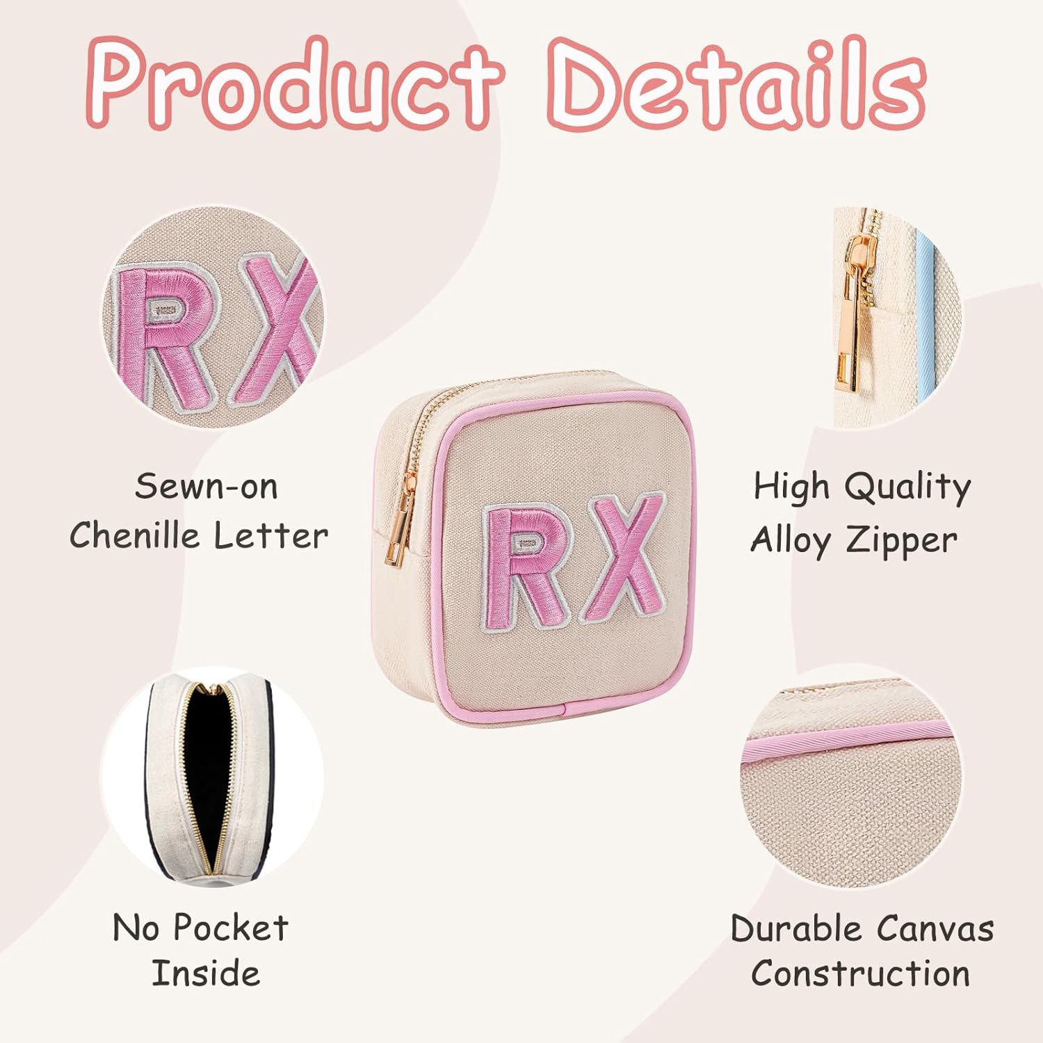 [Product Size]: Our canvas RX Mini bag measures 5×4.5×2.4 inches, easy to carry. Great for travel or to toss in a gym bag, backpack, purse etc.Its compact and lightweight design makes it easy to pack and carry with you on the go, whether you’re traveling or just running errands.[Sewn-On Patches]]:The Medicine bags for women are decorated with chenille letter patches, the monogram is made of delicate embroidery and nonwoven fabric, stitched securely to the bag. The words on the preppy travel bags’ surface can help you classify objects easily.[Reusable And Durable Canvas Bag]: This canvas small bag is made of high quality material soft canvas, very light and durable for daily use.Sturdy metal zipper, fine workmanship, makes cosmetic bag smoother and easy to pull and adds a touch of elegance.Our canvas bag can be machine washable and hand washed.[Reliable Factory]: The personalized medicine bags of our factory seems almost identical to the one you find in exclusive stores. This black canvas bag perfect for year round use.[After-sale Service]: If you have any problems before and after purchase, you can contact us at any time ,and we will provide satisfactory solutions.