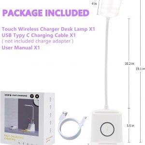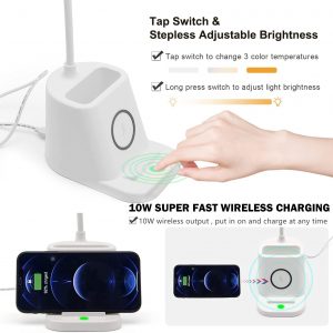 ✨Touch Control 3 Color Light Modes – This desk lamp with wireless charger has 3 color temperatures modes (from 3300-6000K), warm light, natural light and white light. You can choose different color in different scenes. This desk lamp with wireless charger is very easy to control by touching the button to turn on/off the lamp and switch the lighting color. Please note, this led lamp does not built-in battery, it needs to charge to work.