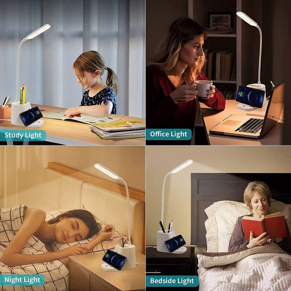 The smartphone can be charged wirelessly horizontally, so you can free your hands, enjoy videos and study online courses. 360° adjustable light pole, with additional pen holder function. High-quality desk lamps are suitable for different occasions: Bedroom, college dorm, office, study, children’s room, study, reading, office, next to the computer, etc.