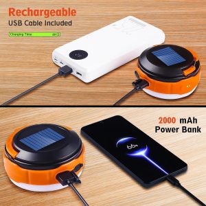 【2000mAh Power Bank For Phone】 This camping lantern equiped with a 2000mAh battery, it will charge your phone during your camping/hiking. It’s also a nice choice to place it in your bedroom in case of hurricanes or power outages.
