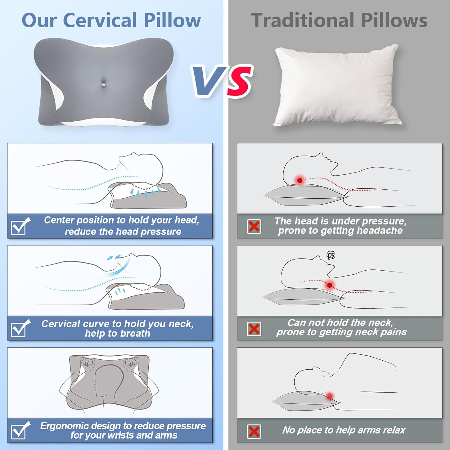 【Enjoy Personalized Comfort with the Perfect Fit】Our adjustable orthopedic pillow is designed to cater to your specific needs. The innovative design allows the pillow to naturally conform to the curves of your spine, providing optimal support and allowing you to shift between positions comfortably. No more tossing and turning throughout the night – experience the bliss of uninterrupted sleep.