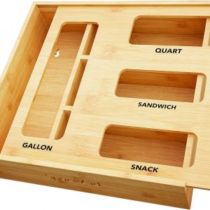 SpaceAid Bag Storage Organizer for Kitchen Drawer, Bamboo Organizer, Compatible with Gallon, Quart, Sandwich and Snack Variety Size Bag (1 Box 4 Slots)