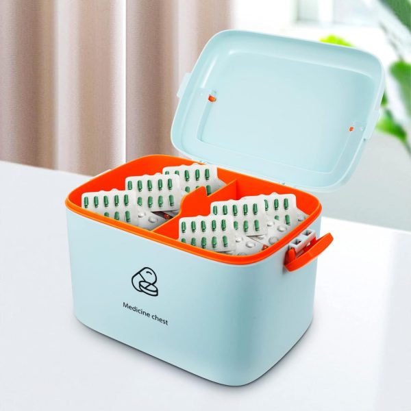 STOBOK Locker Double-layer First Aid Box Portable Medicine Cabinet Pill Case Emergency Medication Storage Organizer Bins with Handle for Travel Car Camping Lockers