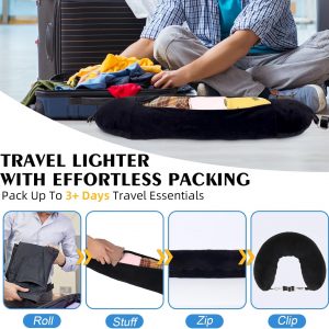 Lightweight Luggage Ally – Avoid the hassle of overweight baggage fees with this fillable travel neck pillow. Capable of holding 3 days’ worth of attire, it becomes an economical space-saver, allowing you to invest in travel experiences rather than excess fees, all while keeping your travel light and stylish.