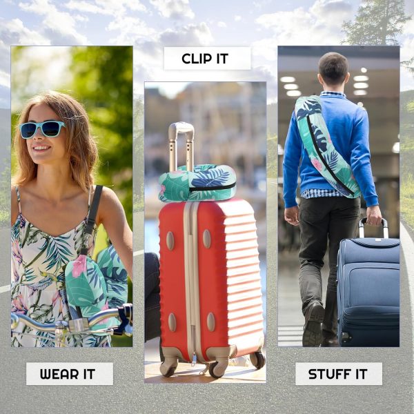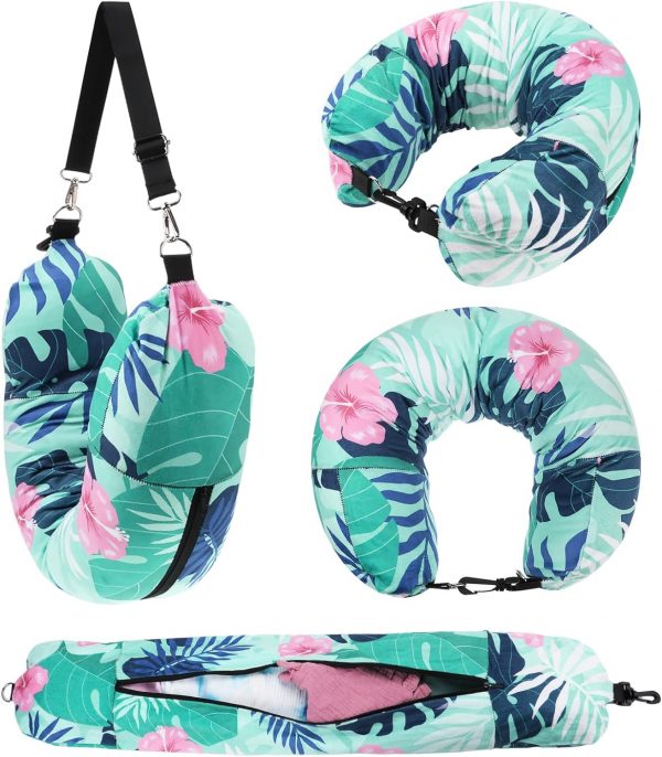 PORTABLE ADJUSTABLE – An adjustable buckle allows a customizable fit. The adjustable shoulder strap makes it easy to carry. Comes with a portable carrying bag and snap closure that allows the travel pillow to compress down to a smaller size and strap it to your luggage