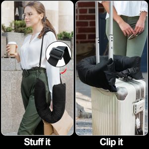 Stuffable Neck Pillow, Sleep Better: With our stuffable neck pillow for travel, you can make the most of your luggage space. Stuff it with clothes or essentials, saving room for other travel must-haves.
