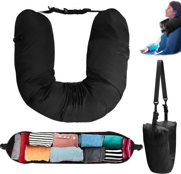 Self-Fillable Design; To make your travels expediency, our stuffable neck pillow for travel is self-filling.You can fill this pillow with laundry to maximize luggage space. No more worrying about the space your pillow takes up, you can fill and empty it anytime, anywhere.