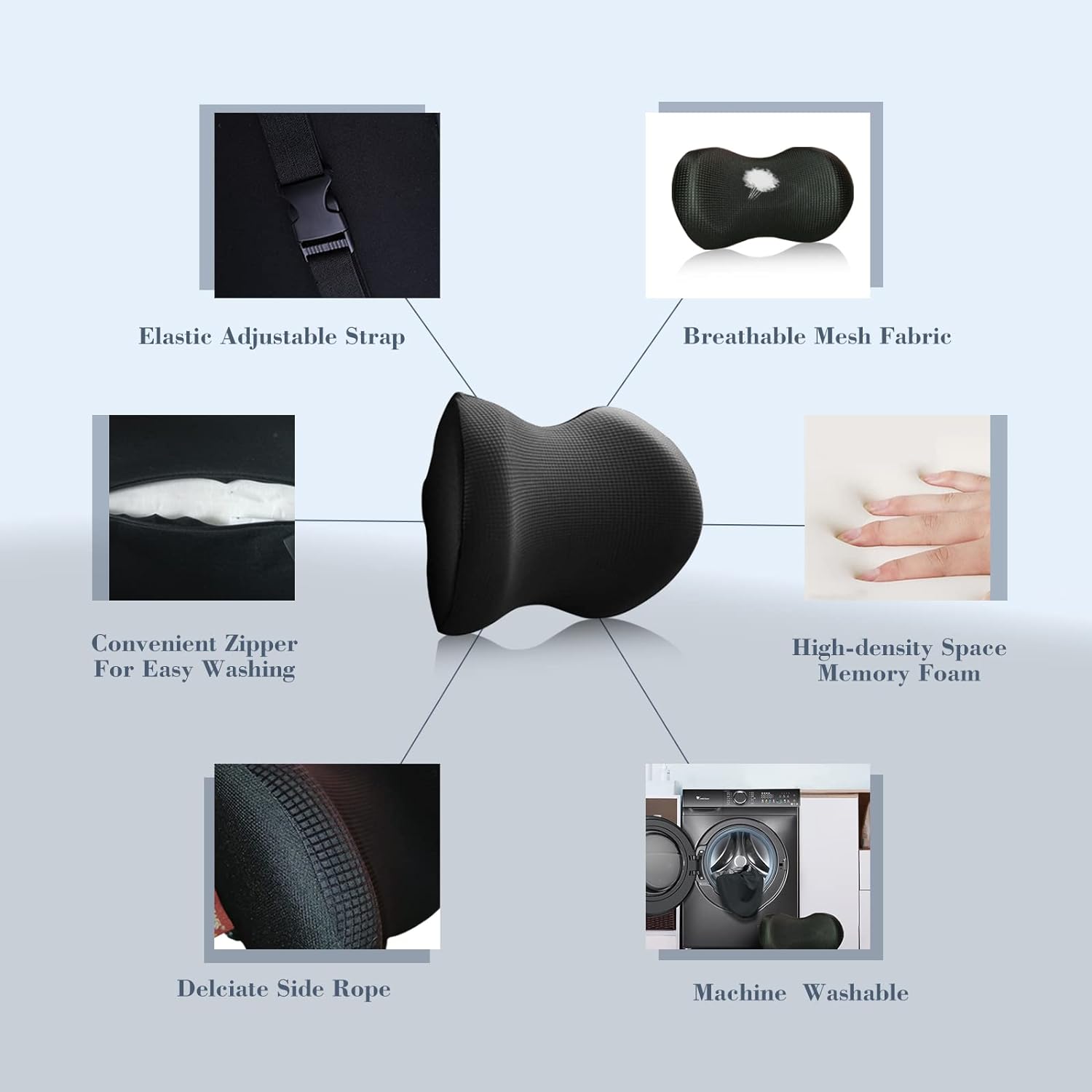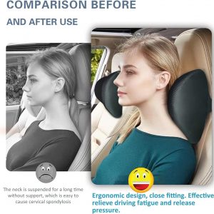 🍀🍀🍀🍀𝟭𝟬𝟬% 𝙋𝙐𝙍𝙀 𝙎𝙋𝘼𝘾𝙀 𝙈𝙀𝙈𝙊𝙍𝙔 𝙁𝙊𝘼𝙈 – Our car headrest pillow are made of high-quality space memory foam, which is soft and comfortable. Car seat neck pillow provide good support for your cervical spine and head, help you maintain a correct driving posture, make your driving safer, reduce neck pain and comfort your neck.