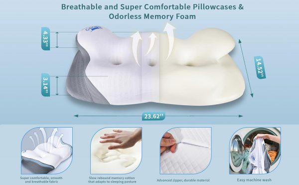 【Dream Cloud Pillow Create Comfortable And Dreamy Sleep Experience】Imagine lying on a fluffy and soft cloud, feeling its gentle wrapping around your head and neck, taking you into one wonderful dream afteranother. This is not a fantasy, but a real experience brought to you by the “Sweet Moon” cloud Contour memory cotton cervical pillow——Through in-depth research and careful crafting, our ergonomic pillow can provide excellent support for your head, neck, shoulders, and back. Its innovative design allows the pillow to naturally fit your spinal curve, providing just the right support for your spine and keeping you comfortable when changing sleeping positions.