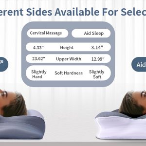 【Various Sleep Modes To Choose From —— Cervical Massage and Aid For Sleep 】The designer has created pillows with sleep patterns to choose from for two common situations, namely neck pain and insomnia:Sweet Moon pillow feature two sleep sides with different heights and hardness,three 3D support areas in the center suitable for side back stomach sleepers,and comfortable arm areas on both sides.By combining the slow rebound characteristics of selected memory cotton, Sweet Moon pillow can perfectly adapt to various situations and sleeping positions, allowing your body and mind to fully relax and recover during sleep.