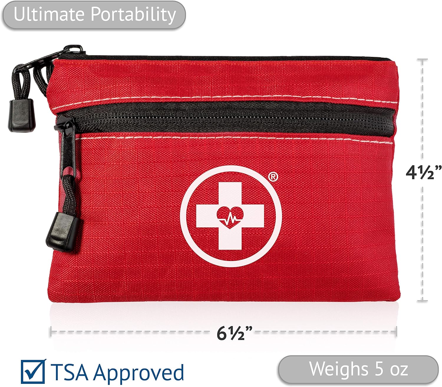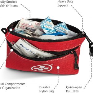 DUAL ZIPPER POCKETS: 64-Piece Kit offers better organization & extra room for more medical items.