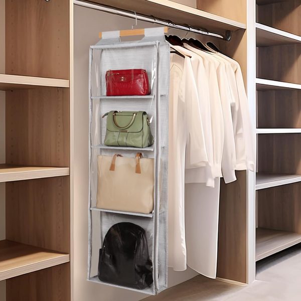 You can easily put your handbag inside the hanging storage organizer when not in use.