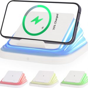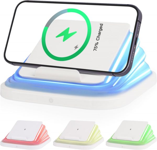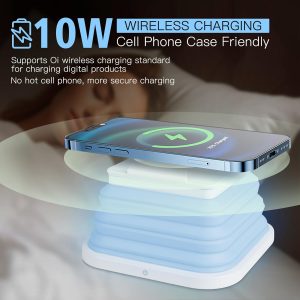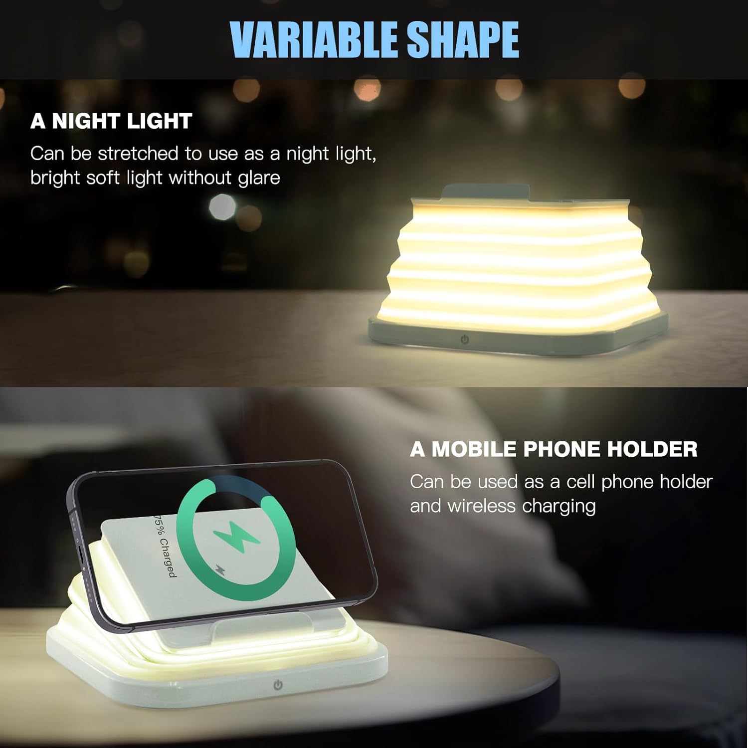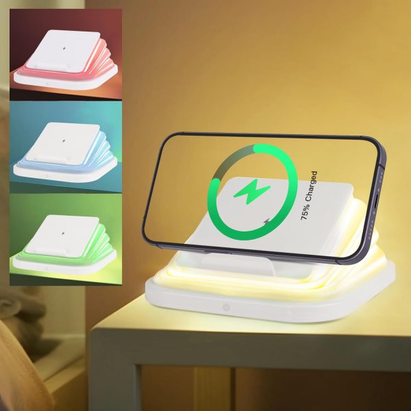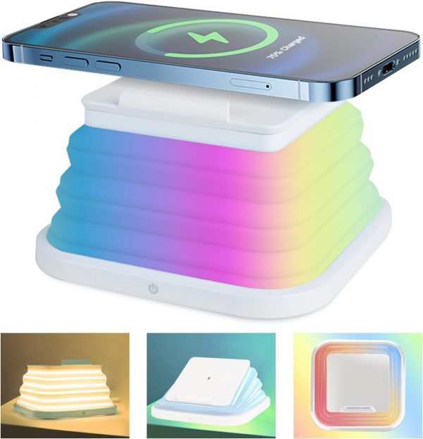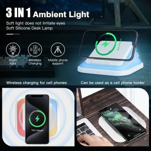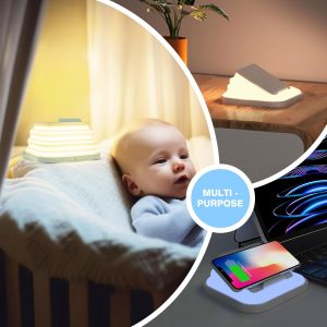 Table Lamp with Wireless Charger, Mini Multifunctional Nursery Lamp, Color Dimmable Bedside Night Light for Kids, Gift for Mom, Atmosphere Light for Nightstand, Bedroom,Camping,Office