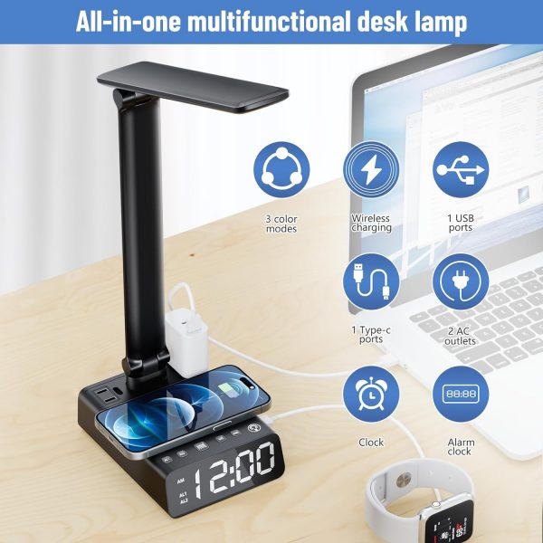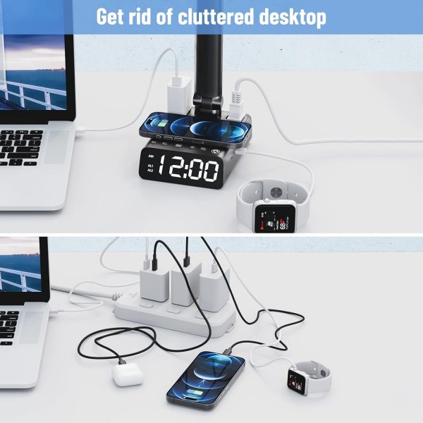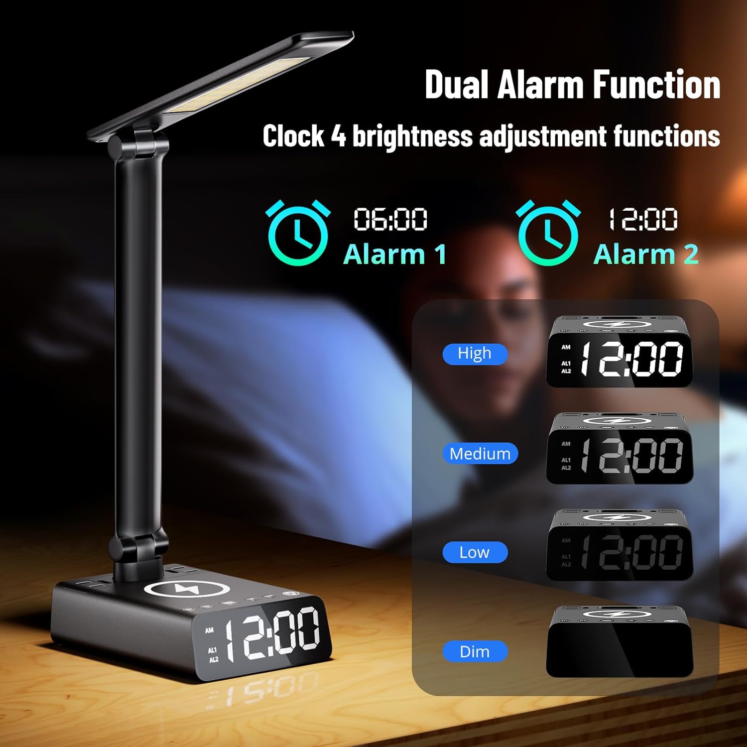 【ALL-IN-ONE LAMP】 Desk lamp + 15W fast wireless charging + digital dual alarm clock base + AC outlets + USB desktop charging station = Tayoka’s high-quality desk lamp. An ideal beautiful decoration for your bedroom, home desk, living room, reading room, office, or university dorm, and a great gift for Christmas, Father’s Day, Mother’s Day, New Year’s, or birthdays.