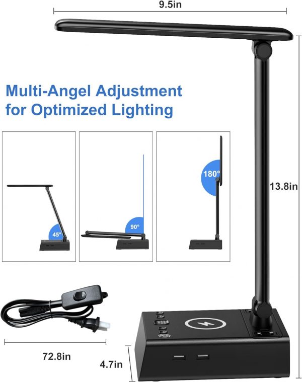 【DESKTOP CHARGING STATION】 The Tayoka desk lamp’s wireless charging is compatible with most Qi wireless-enabled smartphones and can fast-charge your smartphone at 15W. The 1 USB & Type-c port and 2 AC outlets have a 2500W output and overload protection, allowing you to charge your phone, tablet, laptop, digital camera, and other USB devices at the same time while protecting your expensive equipment