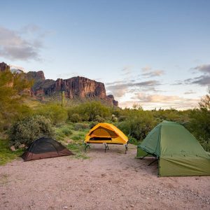 STAY DRY: Sturdy micro mesh tent includes a standard waterproof rainfly; Look for the Elite Rainfly that fully extends to the ground if you’re using the cots — sold separately
