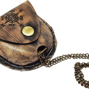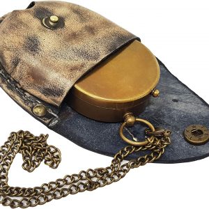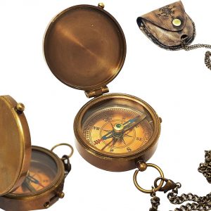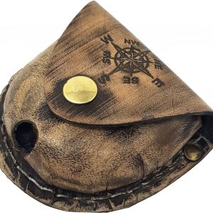 Solid brass compass in Antique finish with stamped leather case. This engravable compass comes with Premium quality cow hide case that is stamped with compass rose.
