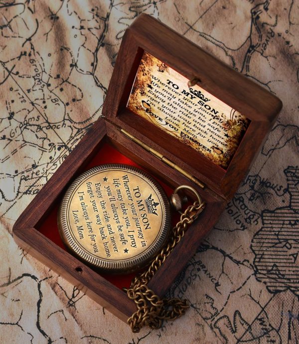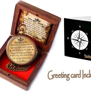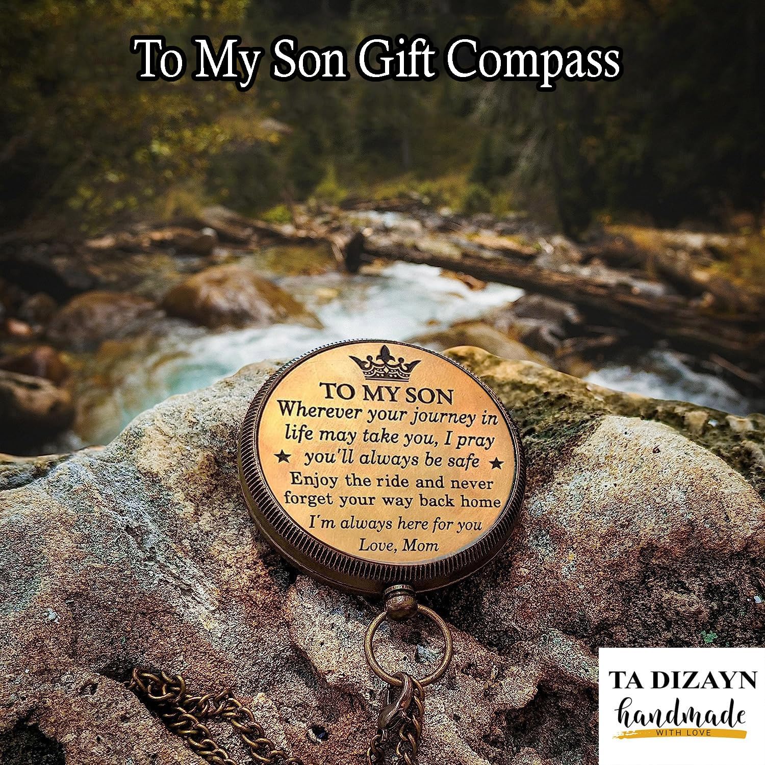 MOM AND SON GIFT – A thoughtful and stunning gift from Mom to Son. Engraved compass makes a perfect Christmas gift for son, Wedding gift for son, Birthday gift for son, or College Graduation gift for son. The Compass is engraved with “To My Son Wherever Your Journey In Life May Take You I Pray You’ll Always Be Safe”