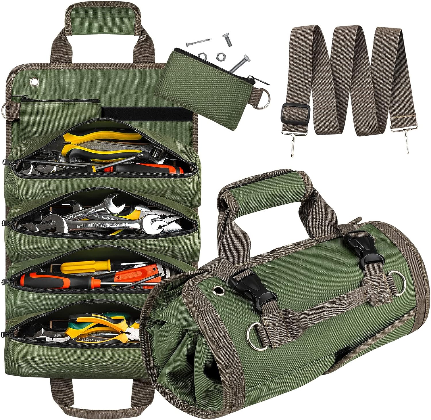 Upgraded Tool Roll Up Bag: This tool roll bag are made of upgraded Oxford Fabric with PVC Coating inside, rust proof zippers, quality straps, buckles and well stitched edge which makes it strong and water resistant. The upgraded material and PVC Coating conforming to the latest E-Mark, with lower smell and no harm to health.