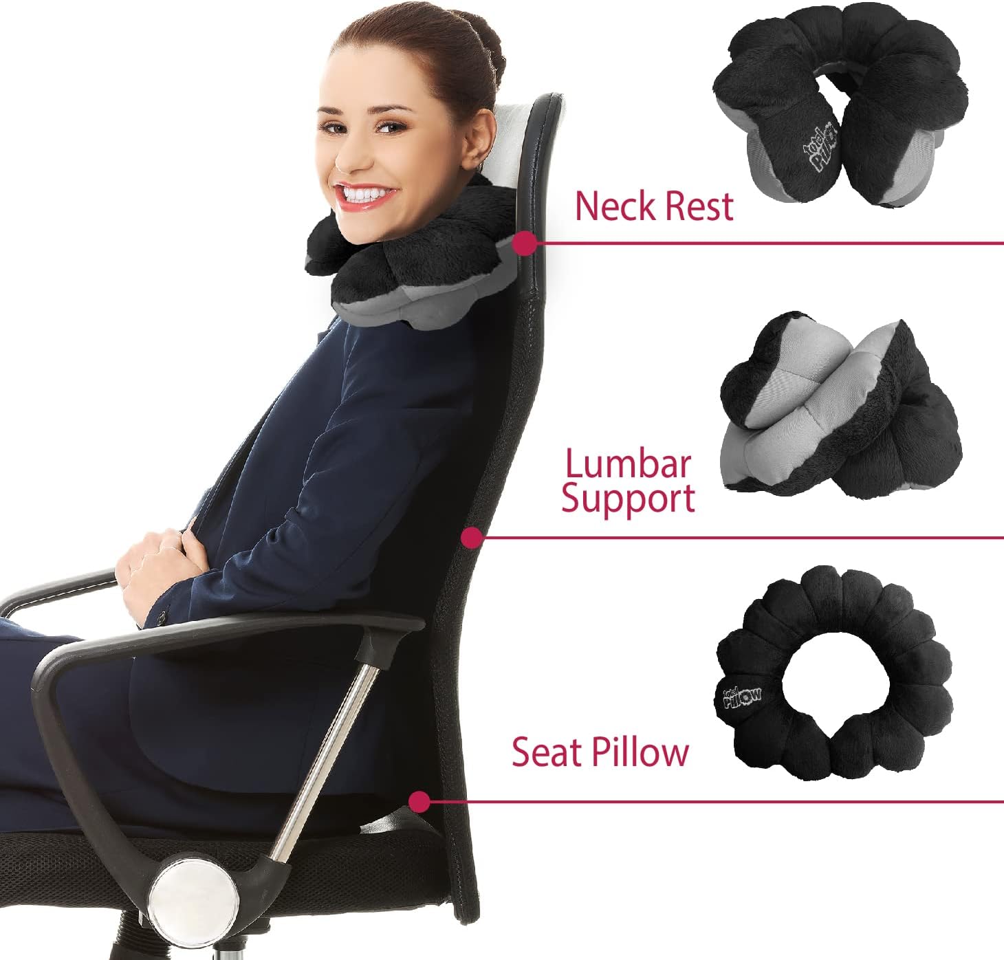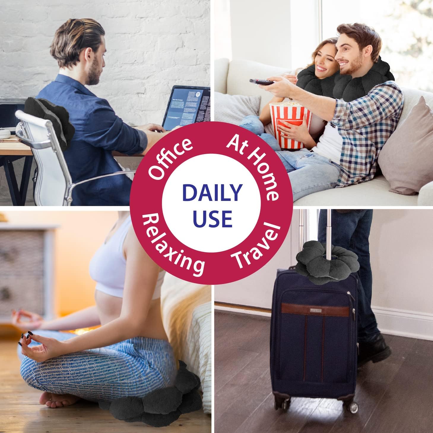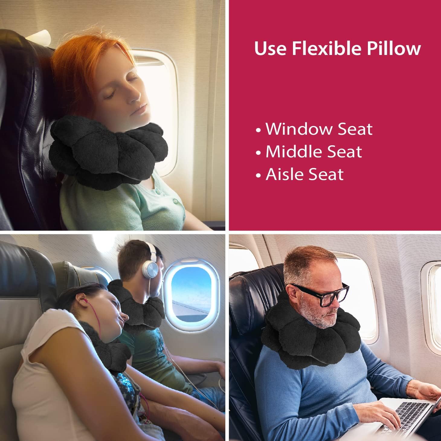 PLUSH FLEECE COVER & TENSION-EASING MICROBEADS: Extra cushion-support petals made of a soft, cozy fleece material make this the ultimate cushy travel neck pillow. Get lightweight comfort for viewing electronic devices at home, resting, working, or sleeping while traveling by airplane, car, bus, or train.