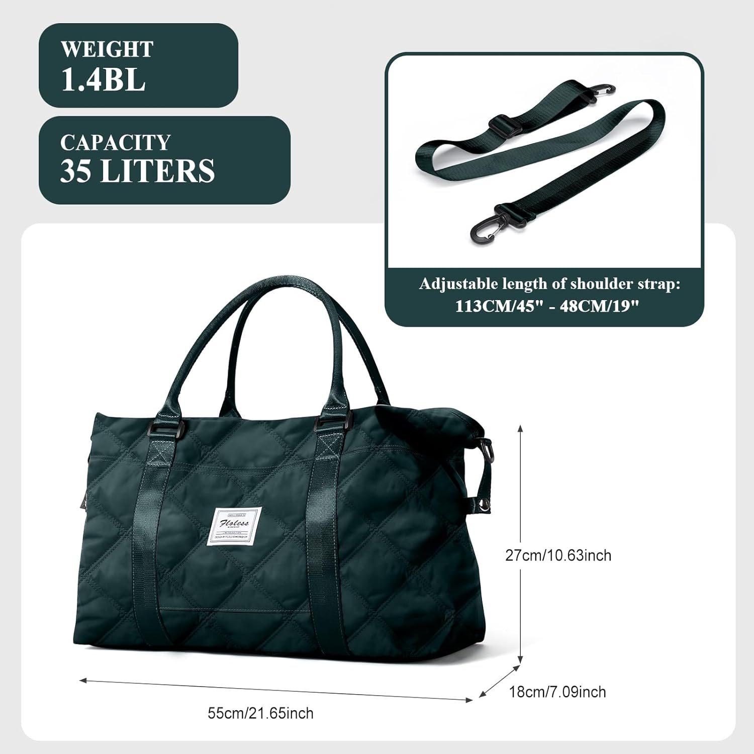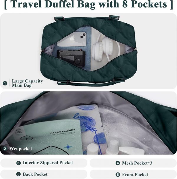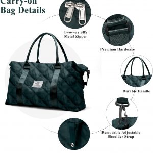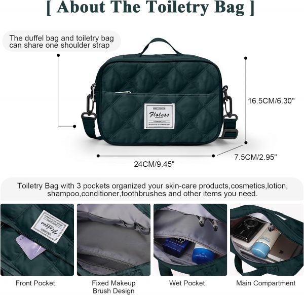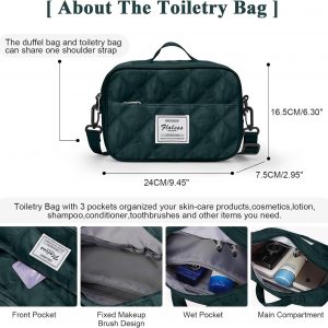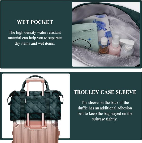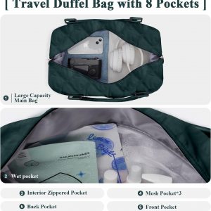 Travel Duffel Bag for Women, Overnight Weekender Bag with Wet Pocket & Trolley Sleeve & Toiletry Bag, Carry On Travel Tote Bag Sports Gym Bag,Green