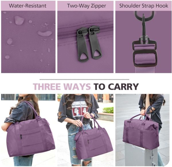 【Airplane Friendly Travel Bag】Dimensions of the large handbag are 27x55x18 cm / 10.63×21.65×7.09 inches, with a weight of 0.6 kg / 1.3 lbs. This weekender bags for women travel is perfect for carrying on board during air travel. Keeping your valuable items and important documents with you ensures their protection throughout the flight. You don’t have to worry about your luggage getting lost, damaged, or stolen during the checked bag process.
