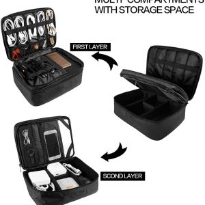 【WATERPROOF & PROTECTED】the tech organizer bag with Waterproof & Shockproof nylon material with the padded foam, which obstructs water and vapor effectively. Don’t worry about wet from splashing water or rain. Heavy duty and Anti-tear material offer all around to protect all things inside well against scratches, dust, impacts and accidental dropping.