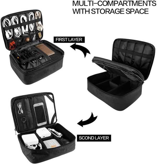 【LRGE CAPACITY & ORGANIZED】SAY GOOBYE TO YOUR MESSY CABLE. Keep all your electronics accessories organized. Multiple pockets and elastic loops sleeve offer great flexibility for packing electronics accessories such as USB Cable Cord, Cellphone, Flash Drive, Wall Charger, SD/TF Card, Hard Drive, Power Bank, Earbuds, Clipper, Mini Camara.