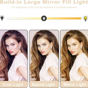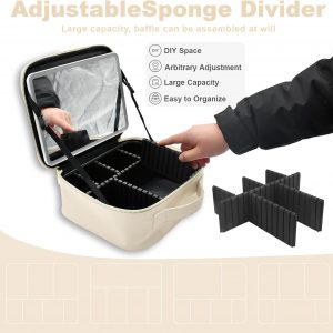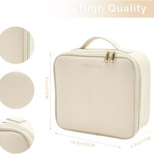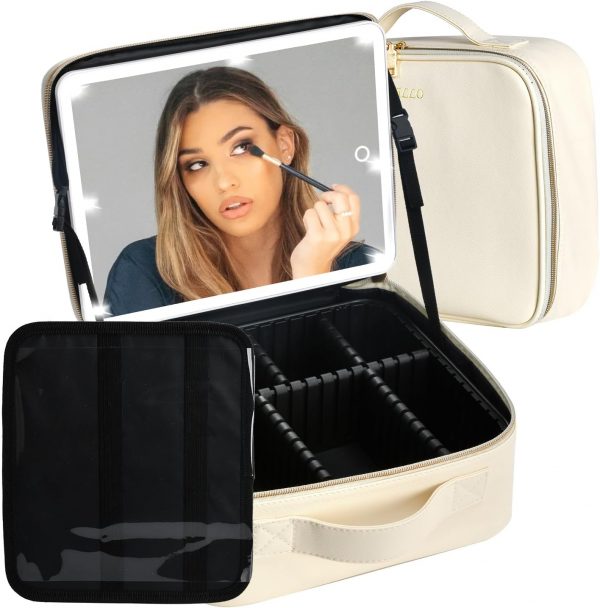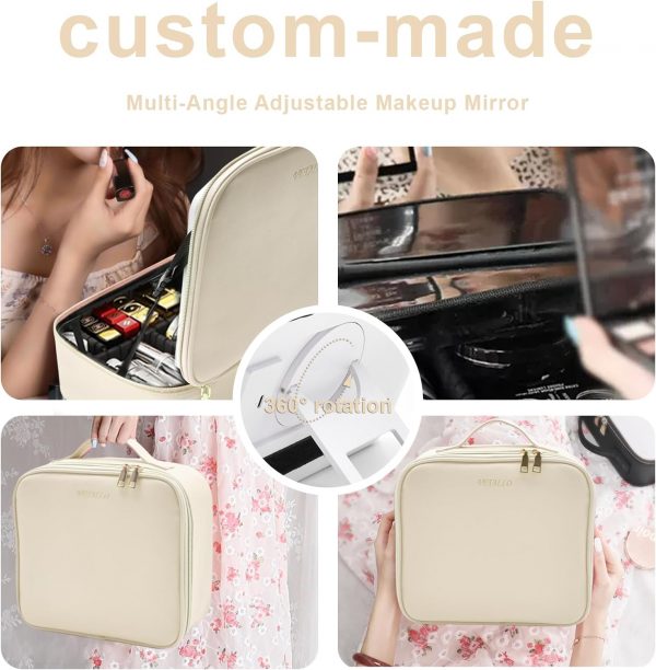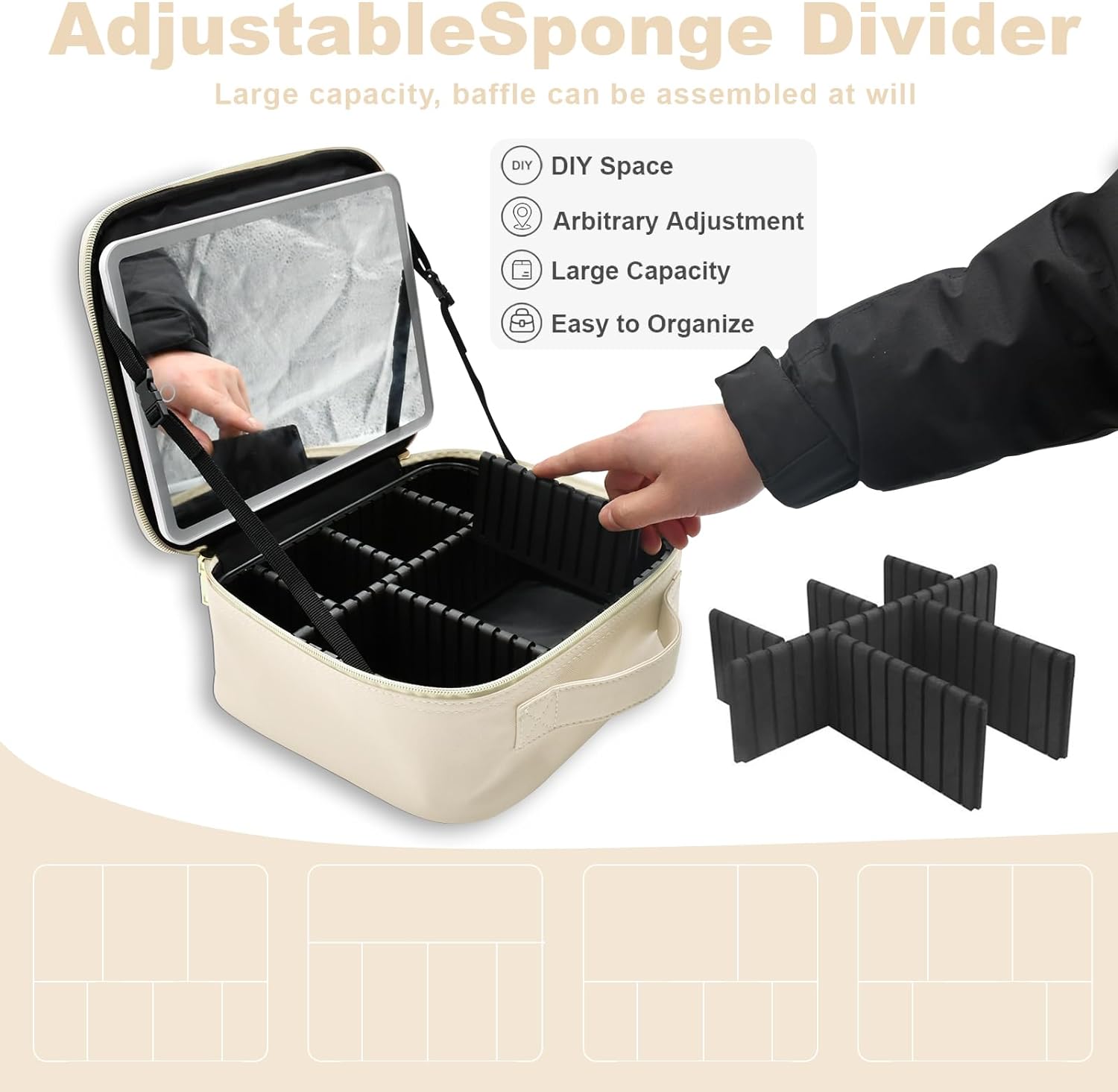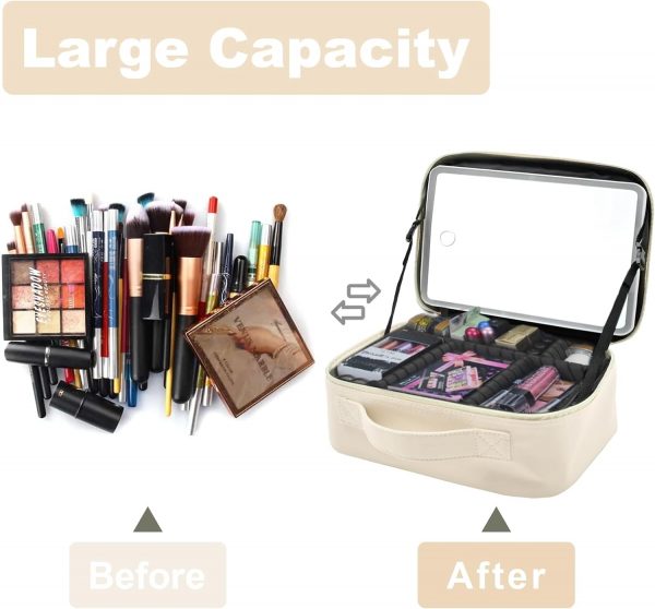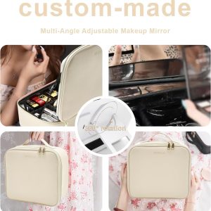 Travel Makeup Bag with Led Mirror, Portable Makeup Train Case Led Makeup Bag with Mirror Makeup Organizer Bag Travel Organizer Bag Makeup Case Ideal Gifts for Mother Mom Women Girls-Beige