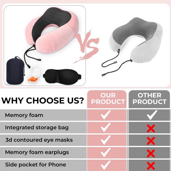 Travel Neck Pillow Made with 100% Pure Memory Foam! Whether You’re on a Long Flight or a Road Trip, This Pillow is Designed to Provide Unparalleled Comfort and Support for Your Neck and Head.