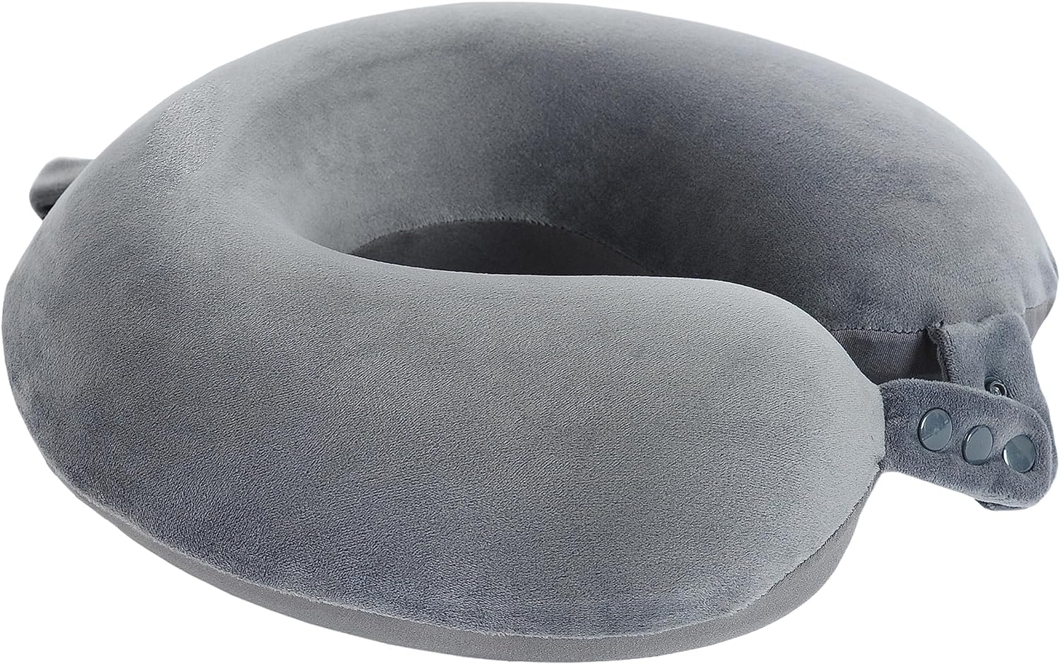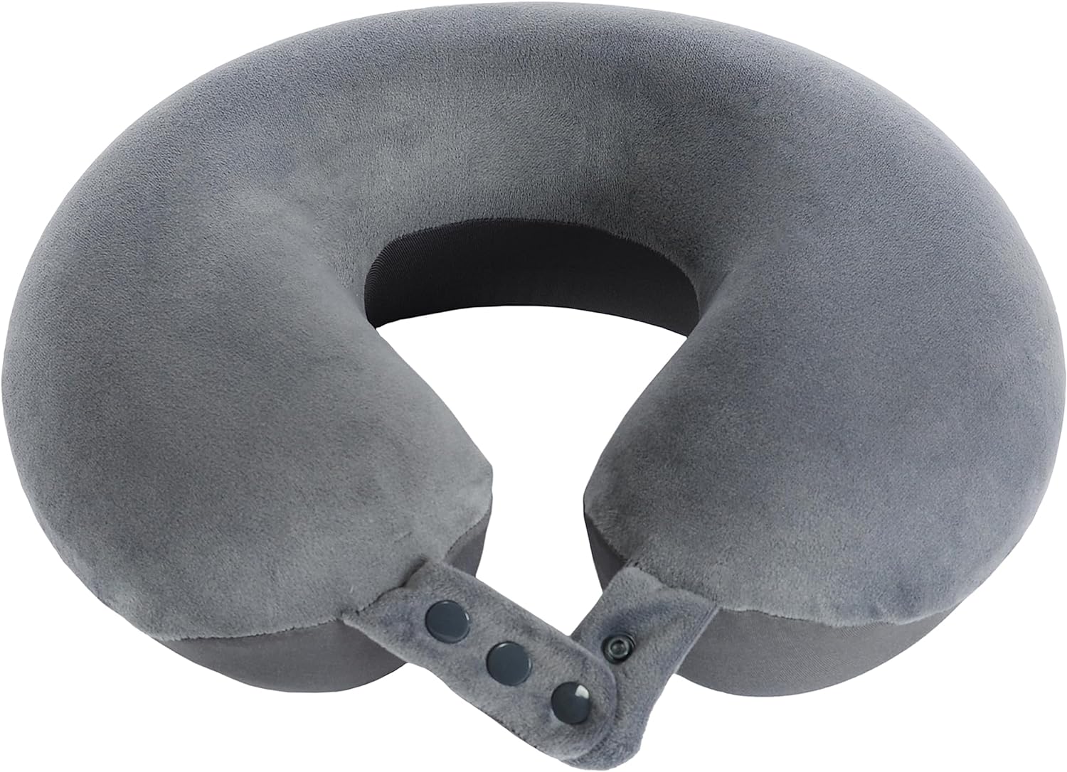 Travel Neck Pillow, Top Memory Foam Pillow for Head Support, Ideal for Airplanes, Cars, and Home Recliners, Adjustable and Soft (Grey)