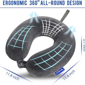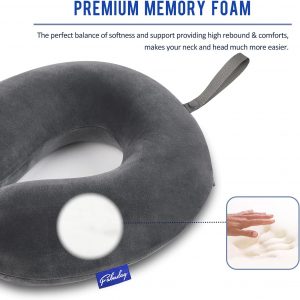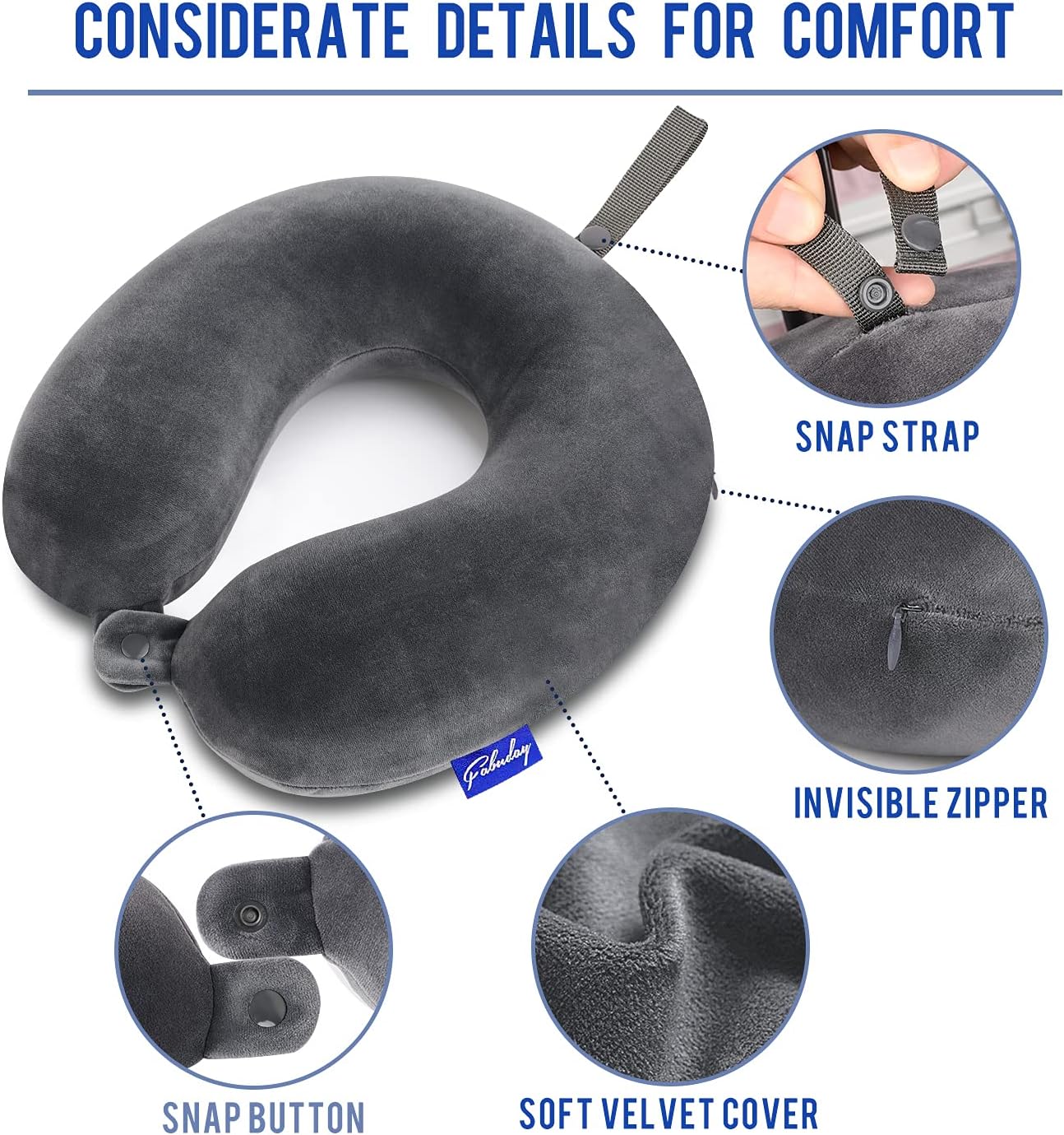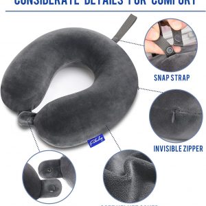 Travel Pillow Memory Foam for Airplanes – Neck Pillow for Traveling, Car, Home, Flight Pillow for Sleeping with Attachable Snap Strap Soft Washable Cover, Provide Head Neck Support Rest, Dark Gray