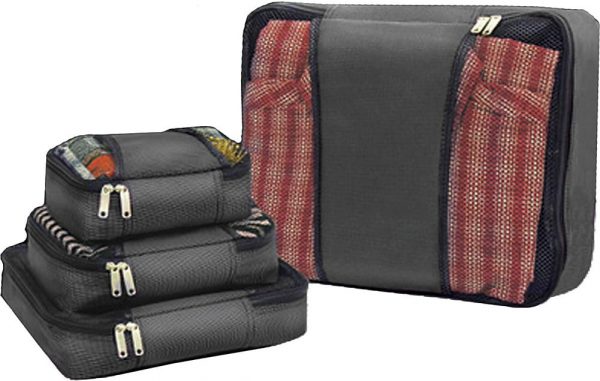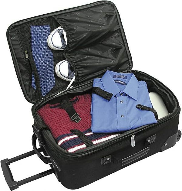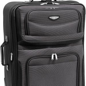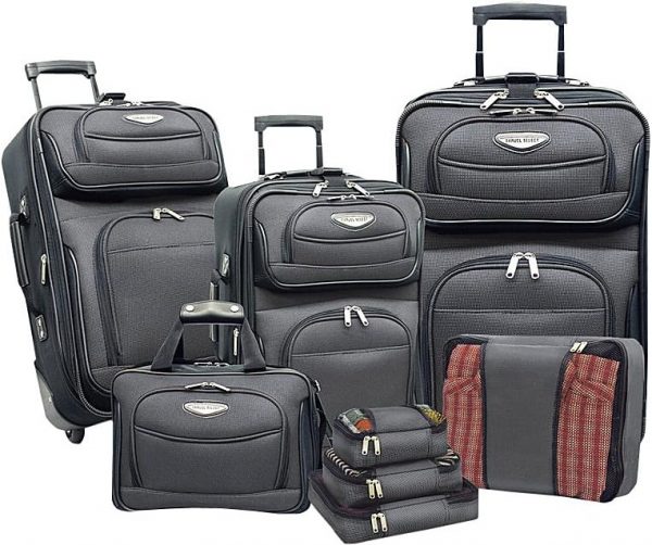Travel in style with this Amsterdam II 8-piece luggage set. The set is made of 1200 D 2-tone polyester. Each suitcase features expandability, telescopic handle system, recessed inline skate wheels, add-a-bag strap, and full interior lining. The travel tote bag has adjustable shoulder strap with padded handle. The packing cubes have solid matte finished metal pulls that make opening and closing easy. Mesh top panel is great for easy identification of contents and ventilation. The soft mesh won’t damage your delicate fabrics. Dimensions: large suitcase 29 inches high x 17 inches wide x 10 inches deep (expands to 12 inches deep). Medium suitcase 25 inches high x 15 inches wide x 9 inches deep (expands to 11 inches deep). Small suitcase 21 inches high x 13 inches wide x 7.5 inches deep (expands to 10 inches deep). Travel tote: 15 inches high x 11 inches wide x 6 inches deep. Extra-large packing cube: 15 inches high x 12.5 inches wide x 4 inches deep. Large packing cube: 13 inches high x 10.5 inches wide x 4 inches deep. Medium packing cube: 11 inches high x 7.5 inches wide x 4 inches deep. Small packing cube: 9 inches high x 6.5 inches wide x 4 inches deep.