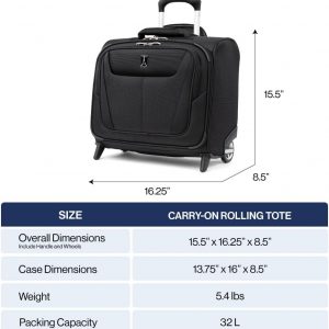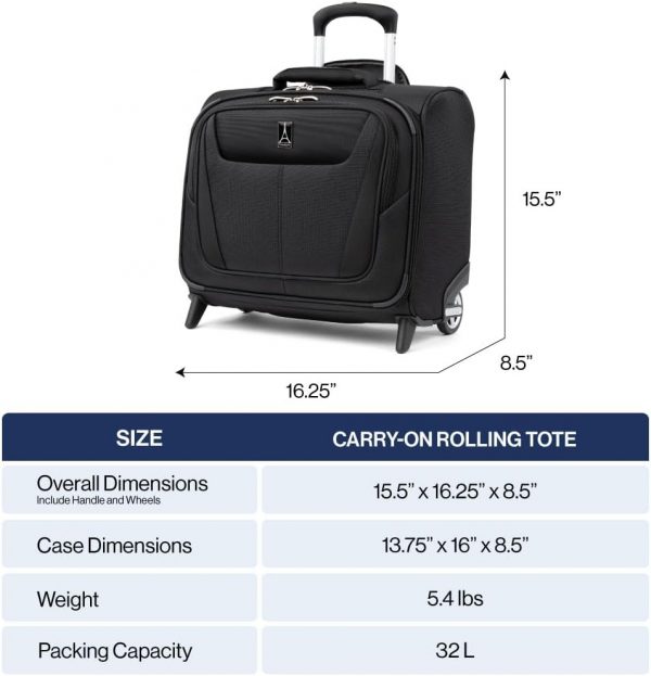 Meet your new favorite bag; Ultra-lightweight and super smart, the Maxlite 5 rolling tote serves double duty as a stackable complement to your carry-on bag or as a compact, all-in-one suitcase for short trips. Packing is easy and organized with a roomy interior, quick-access front flap and multiple pockets throughout for everything from essentials to electronics. Ball bearing wheel design and rear stacking strap provide complete flexibility for secure stacking and hands-free mobility. This Fit to Fly carry-on spinner has been sizer been tested to accommodate overhead bin space on most major US airlines. Backed by Travelpro’s Limited Lifetime Coverage plus a new and expanded “Trusted Companion Promise”, which covers the cost of repair for damage from airline or other common carrier for 1 year. Also, with our new Trusted Companion Promise, we will even reimburse shipping costs when you send your bag to us for warranty repair or replacement during that 1st year.