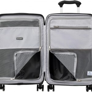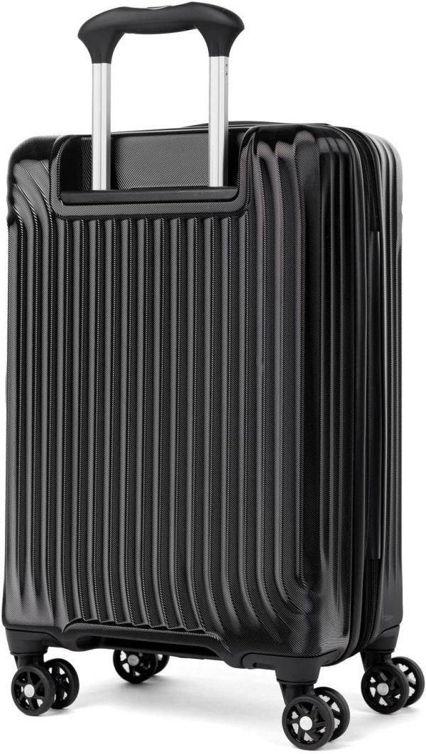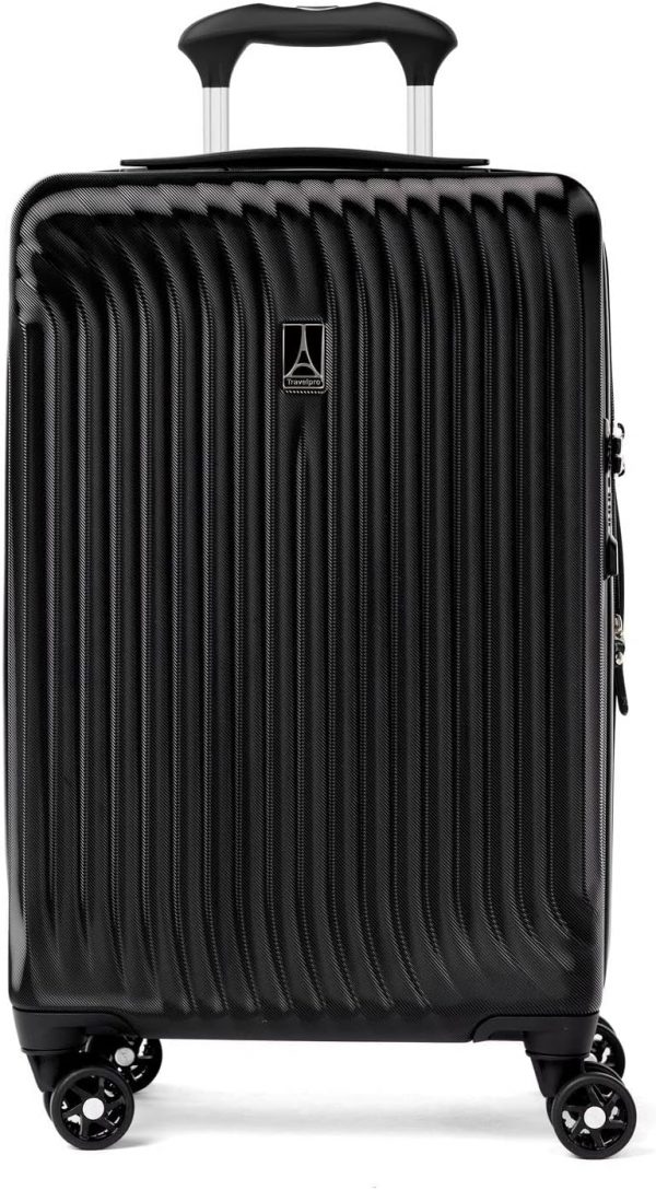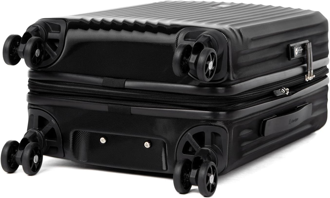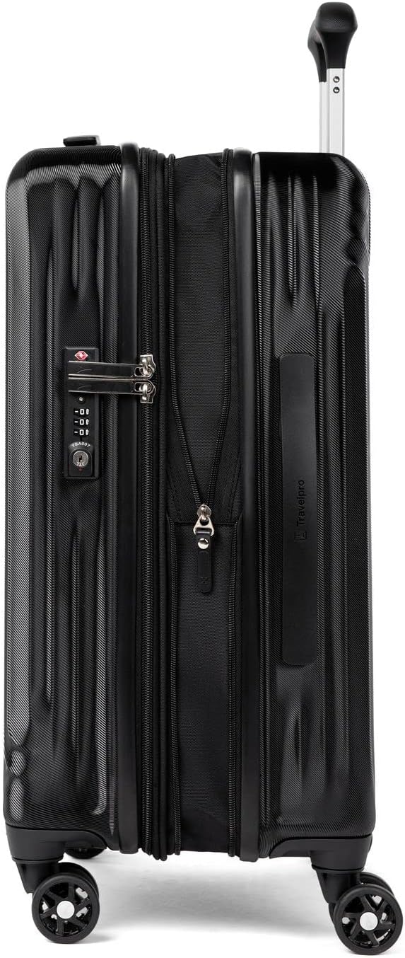 Keep it light when carrying on with the durable, well-equipped, lightweight Maxlite® Air Carry-on Expandable Hard sided Luggage with Spinner Wheels. This black suitcase has 100% polycarbonate exterior that is engineered to flex if impacted to prevent splitting, cracking or punctures, and a stylish exterior finish reduces visible scratches or scuffs. Great for checking in too, this hardshell luggage has a built-in lock allows TSA authorities to safely unlock and relock the bag for inspection when needed, and a zippered expansion option maximizes packing capacity when needed. The interior lining of this luggage carry on is made from 100% post-consumer recycled plastic bottles to help reduce environmental waste and treated with H2O guard for moisture resistance. This hard shell suitcase has two zippered interior divider panels and built-in accessory pocket keeps everything you pack organized, separated, and secure. Glide with ease on eight smooth-gliding spinner wheels that rotate 360° led by a PowerScope Lite handle that locks in two positions (38” and 42.5”) for users of different heights. A patented Contour Grip with rubberized touch points makes maneuvering easy and comfortable. This spinner hardside suitcase is backed by our Built For a Lifetime Limited Warranty with Trusted Companion Promise that even covers damage caused by airlines or other common carriers for the first year of the lifetime warranty.