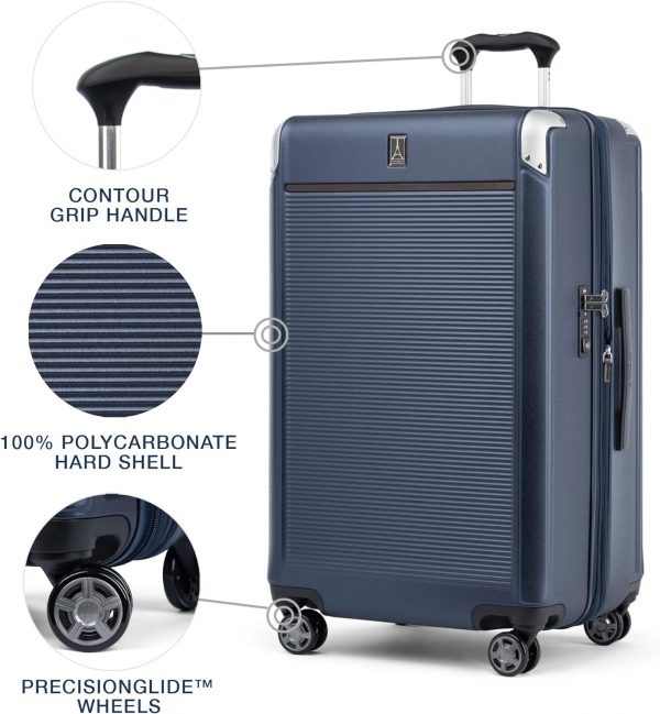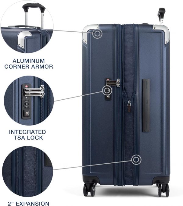 Travelpro Platinum Elite Hardside Expandable Checked Luggage, 8 Wheel Spinner, TSA Lock, Hard Shell Polycarbonate Suitcase, True Navy Blue, Checked Large 28-Inch