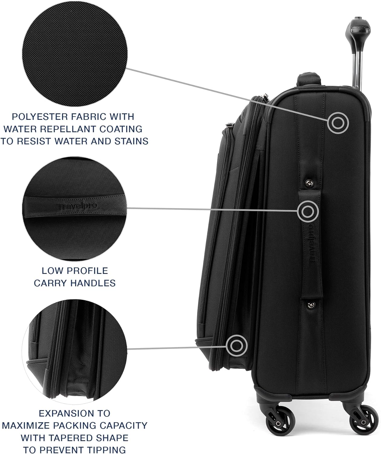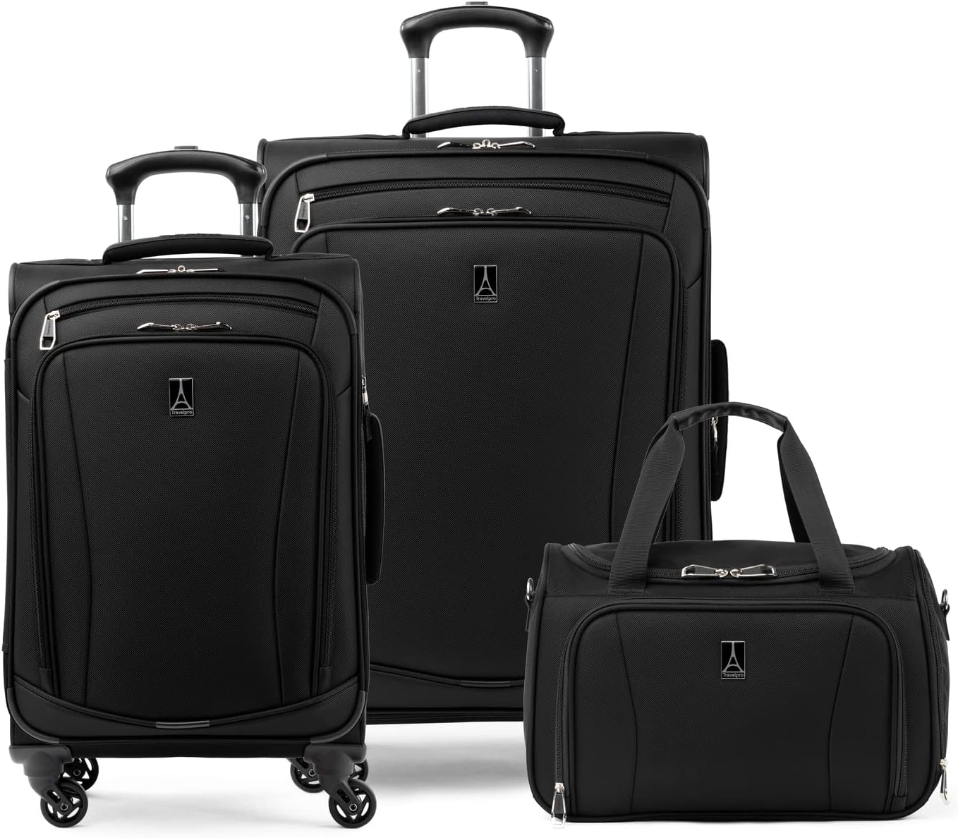 It’s all systems go with the Travelpro® Runway® 3-piece Suitcase Set. This complete set includes a Travelpro® Runway® UnderSeat Tote, Carry-on Expandable Spinner, and Check-in Expandable Spinner that converts from a medium-sized check-in to a large check-in bag with a unique, three-inch expansion option. It’s like having four bags in three – all made with durable polyester fabric that resists water and stains for resilience and lasting use. The UnderSeat Carry on Tote is the perfect companion travel tote bag for onboard essentials, excursions, and packing more than your luggage fits. With its soft sided, durable exterior and compact size, this underseat bag works for endless uses and has, both, a quick-access zippered exterior pocket and interior accessory pocket for securing smaller items. A padded, adjustable shoulder strap ensures an ideal fit and optimal carrying comfort. Or slip the rear strap over the extension handle of one of the spinners for secure stacking and ultimate convenience. With two expandable suitcases in this set, you get everything from an adaptable carry on suitcase to a medium or large check-in suitcase. Each spinner luggage has two external zippered pockets, a full-length interior lid pocket, side accessory pocket, and adjustable hold down straps for organized packing. Smooth-gliding, 4-wheel spinners rotate 360° to provide superior maneuverability led by height-adjustable handles with patented ProGrip™ design for hand comfort. Size and expansion is where this set differs most – the Travelpro® Runway® Carry on luggage with spinner wheels has been sizer bin tested to fit in the overhead bins of most major domestic airlines and offers and a tapered expansion feature that adds up to 2” more packing capacity. The Runway® Check in luggage is a medium suitcase that features a unique, 3” expansion option that increases the bag’s capacity and size to a large checked bag (luggage 62 linear inches). No need to buy a medium and a large travel suitcase – or even decide which to bring. Whether you over pack before departure or over shop at your destination, you will never have to worry about running out of space!