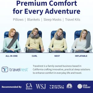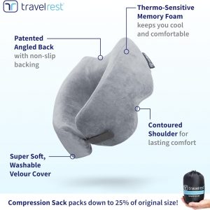 TRAVELREST Nest Memory Foam Travel Pillow & Neck Pillow – Advanced Neck Support for Long Flights – Patented Design for Optimal Relaxation – Long Travel – Unmatched Sleep – Washable Cover – Gray