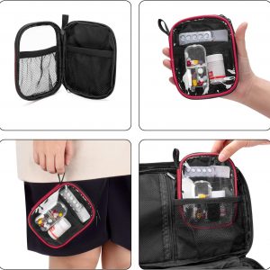 ● Transparent pouch for important medicines or precious personal items that can be carried alone or secured with hook & loop fasteners in the top compartment.