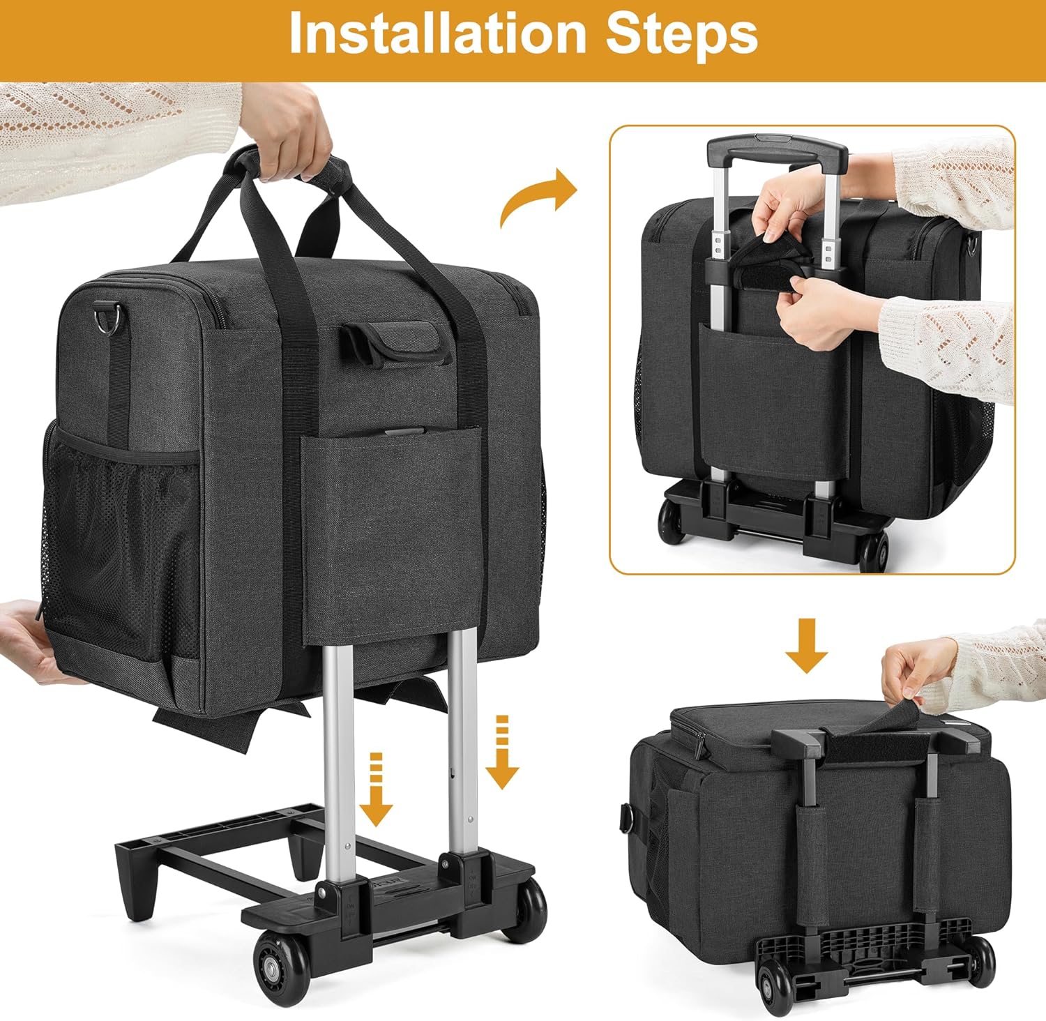 Trunab Rolling Teacher Bag, Teacher Tote Bag with Bottom Pad and Detachable Trolley, Wheeled Teacher Bag with Padded Sleeves Holds up to 15.6” Laptop