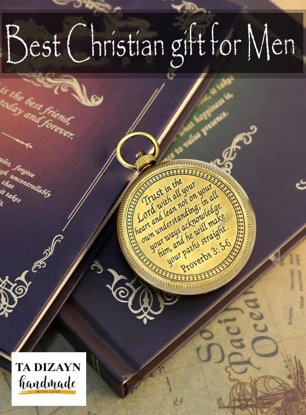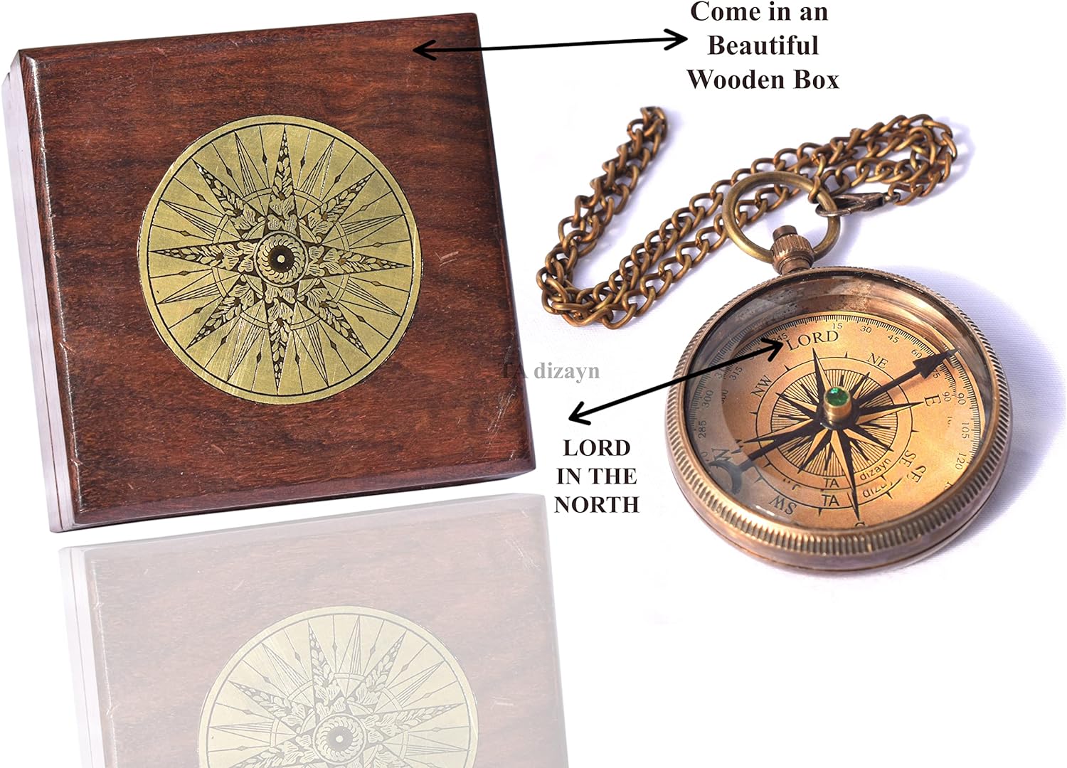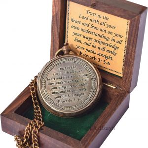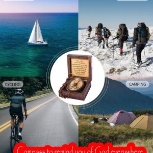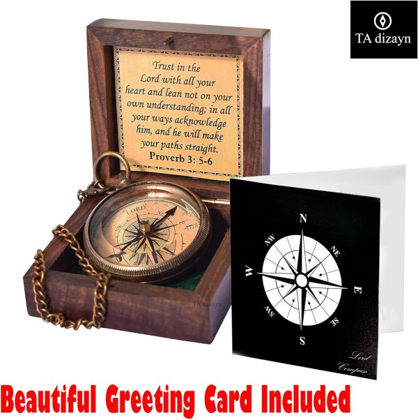 Trust in The Lord with All Your Heart -Proverbs 3: 5-6 Quote Engraved Compass with Wooden Box, Greeting Card, Gift Compass, 2023 Graduation Day Gifts- Baptism Gifts Compass for Women Mens Boy Girls