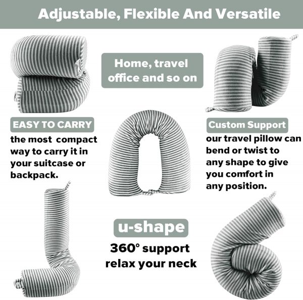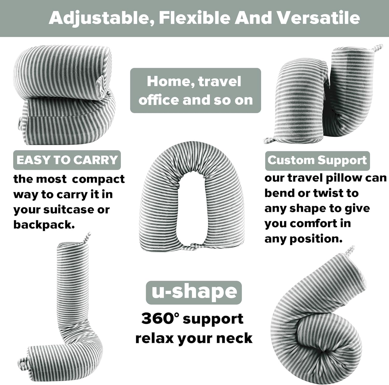 Twist Memory Foam Travel Pillow for Neck, Chin, Lumbar and Leg Support-for Travling on Airplane, Train, Bus or at Home-Adjustable, Bendable Roll Pillow with Washable Soft Cover