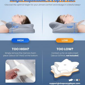 CUSTOMIZABLE SLEEP HEIGHT! EXPERIENCE TRUE LIBERATION! According to the latest research, maintaining a 15° golden ratio of ARC neck traction during sleep is pivotal in restoring the body’s natural curves and enhancing deep sleep by an astounding 45 minutes! Cozyplayer offers enhanced freedom in this regard, allowing you to achieve greater contouring by rotating the cooling pillow 180 degrees or removing the bottom insert. You’ll always find the perfect sleep height on our bed pillow!