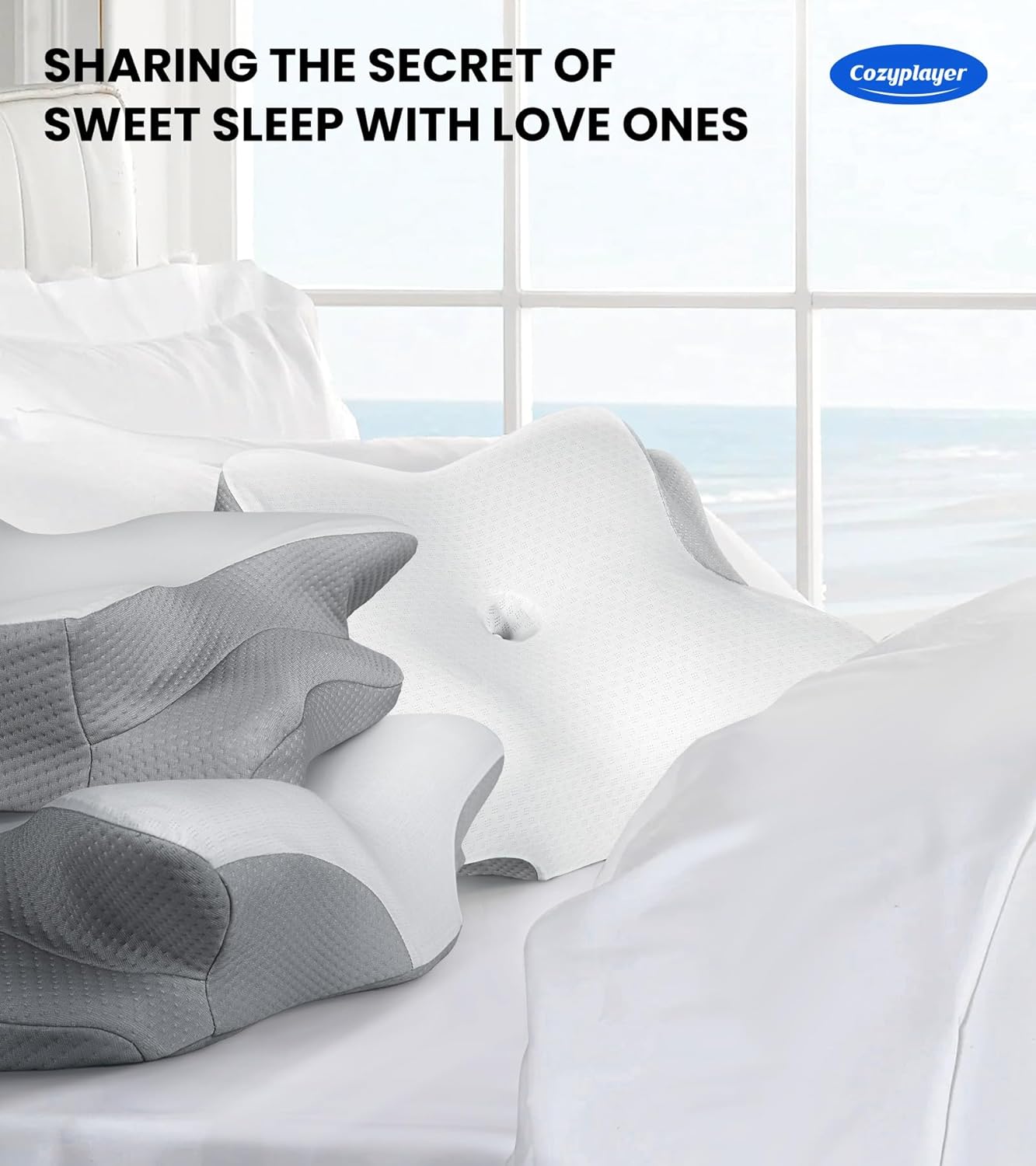 EMBRACE HEALTHY SLEEP WITH PREMIUM MEMORY FOAM & COOLING PILLOWCASE – Unlike 90% of support pillows, Cozyplayer utilizes the Q-Max 0.4 Arc-Chill cooling pillowcase, which instantly reduces skin temperature by 5℃! Additionally, the pillowcase fabric utilizes a highly dense 3D mesh design, offering excellent breathability. Our pillow core is made of 98% breathable memory foam, which is non-toxic, odorless, and certified by OEKO-TEX, CertiPUR-US, and ISPA. Sleep soundly and stay dry all night!