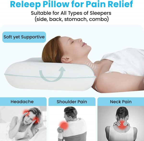 【Re:feel Pillow for Pain Relief】- Releep Re:feel Pillow provides a perfect balance of softness and support for deep sleep. This memory foam pillow redefines sleep quality and offers a sensation of comfort akin to a cat kneading. Softness envelops the head, while sufficient support cradles the neck, releasing all pressure and maintaining the spine’s natural curvature. Relax into slumber; healthy sleep starts with choosing Releep.